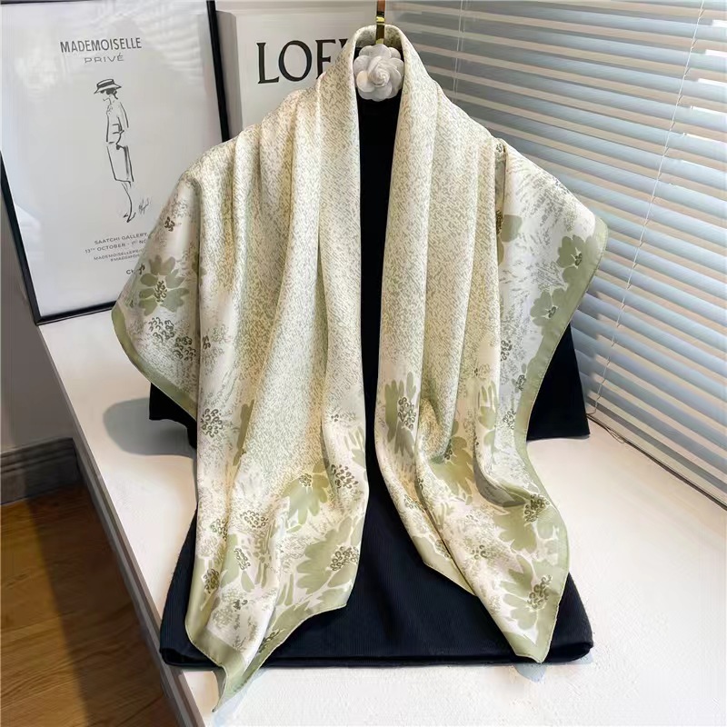 봄과 가을 여행 실크 스카프 대형 숄 트울 실크 스퀘어 스카프 꽃 달콤한 레이디 스카프스토어 가기