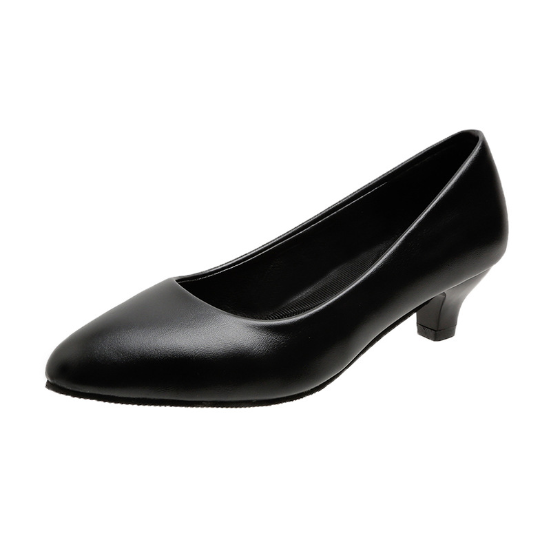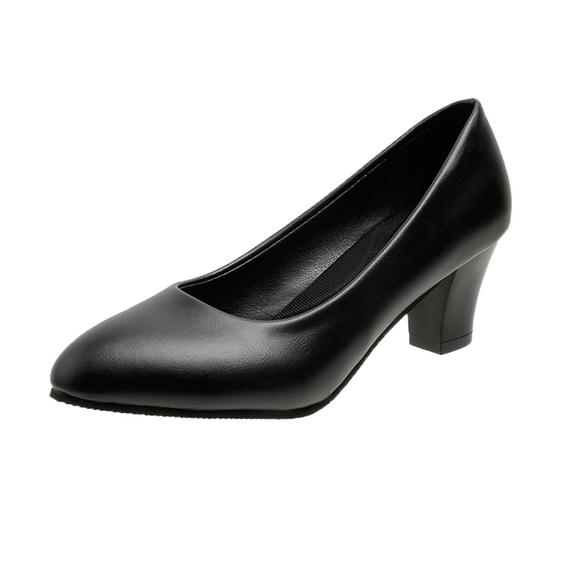 2024 두꺼운 뒤꿈치 포인팅 전문 여성 신발 올매치 작업 신발 여성의 새로운 하이힐 싱글 레이어 신발 블랙 로우 힐 가죽 신발스토어 가기
