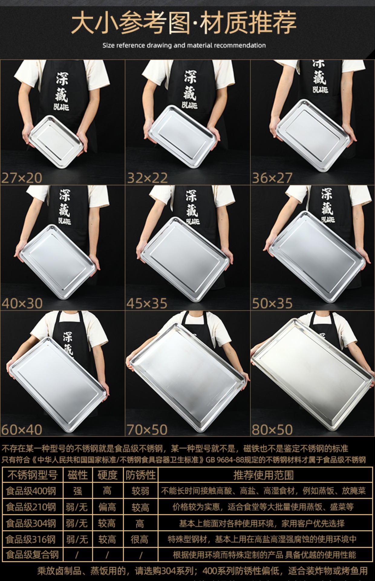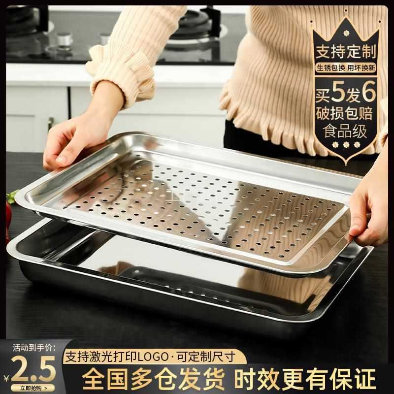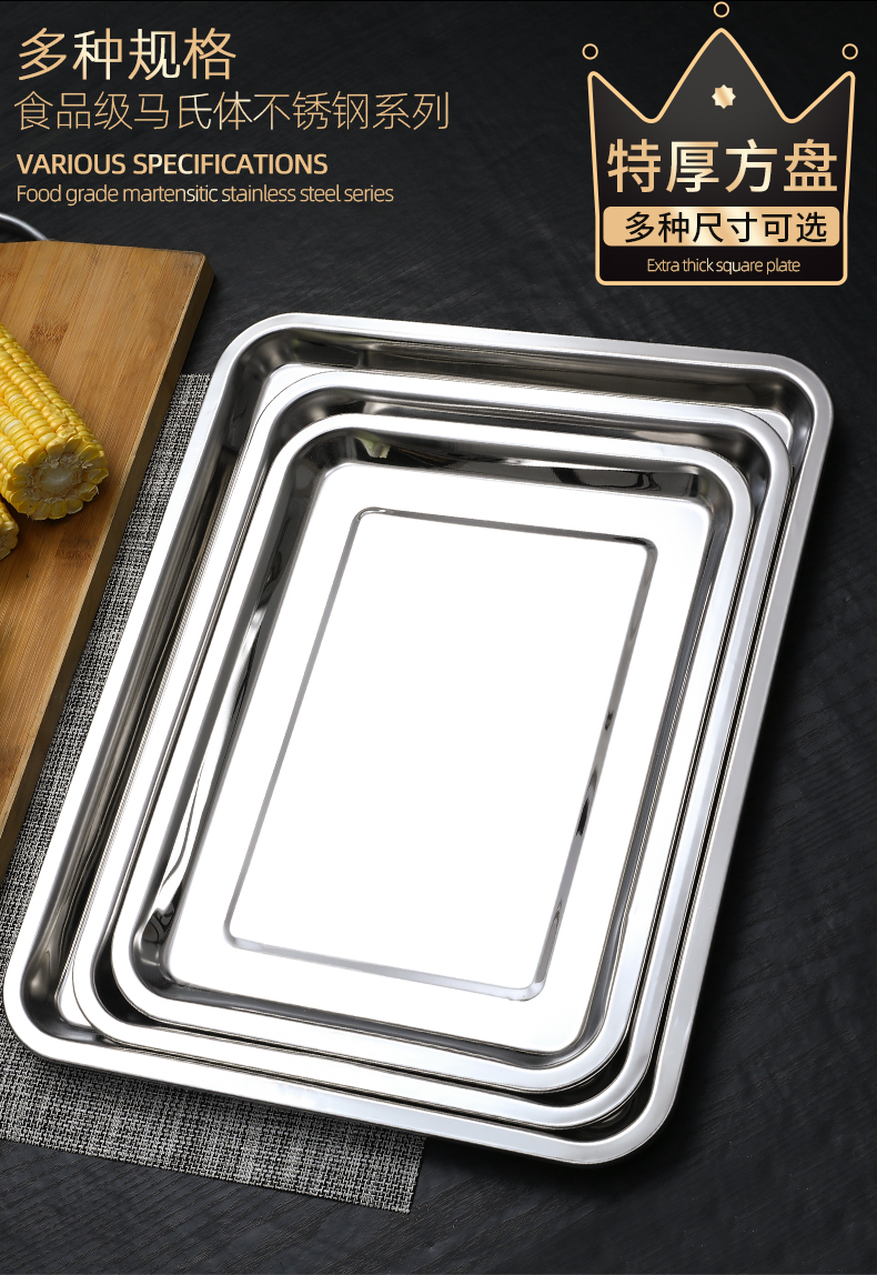 사각 접시 스테인레스 스틸 플레이트 직사각형 트레이 철판 바베큐 상업용 가정용 주방 접시 누출 된 접시 두꺼운 차 접시스토어 가기