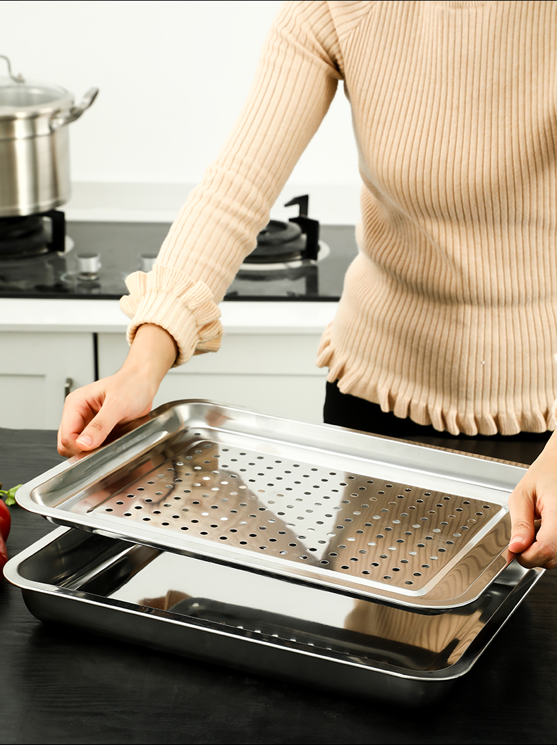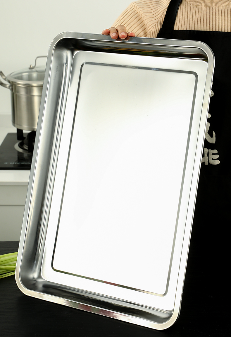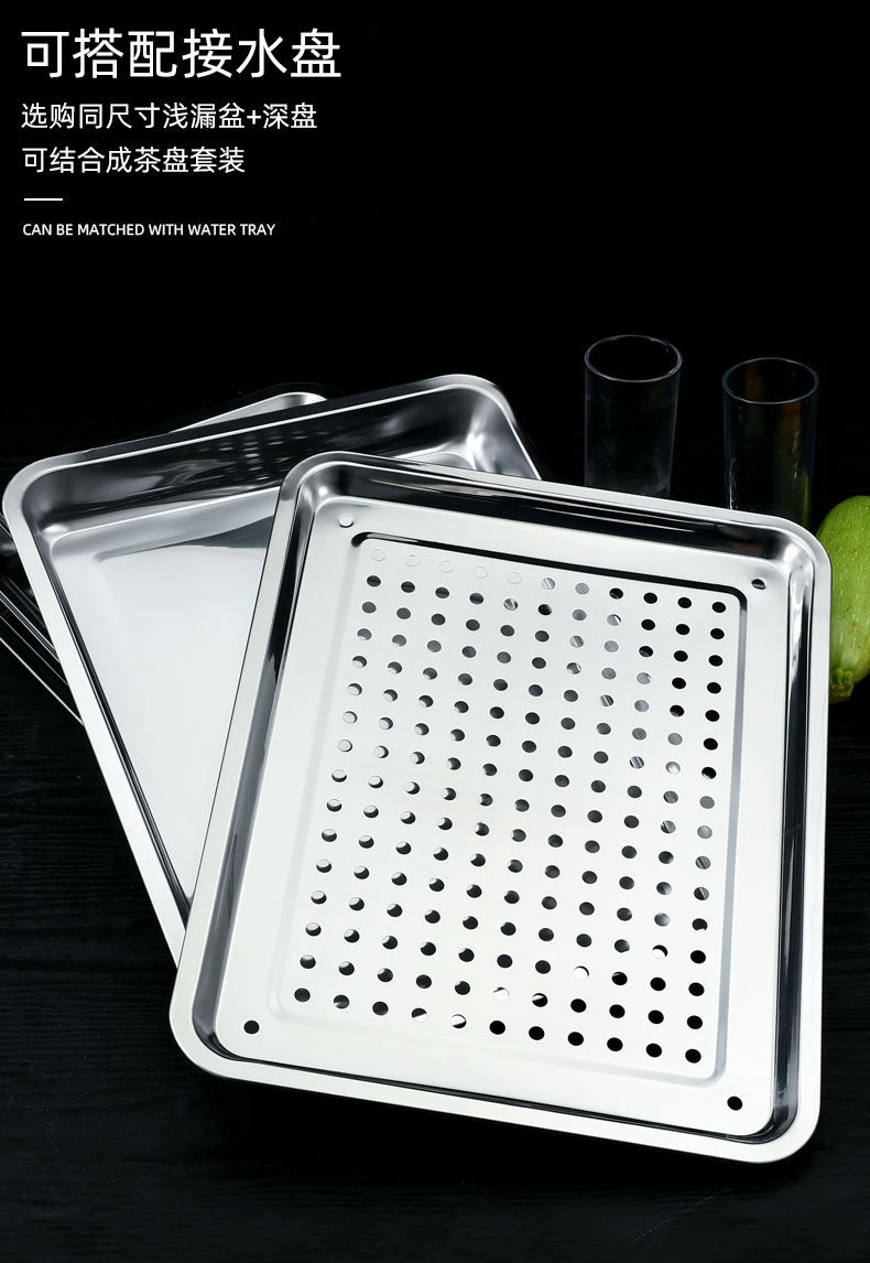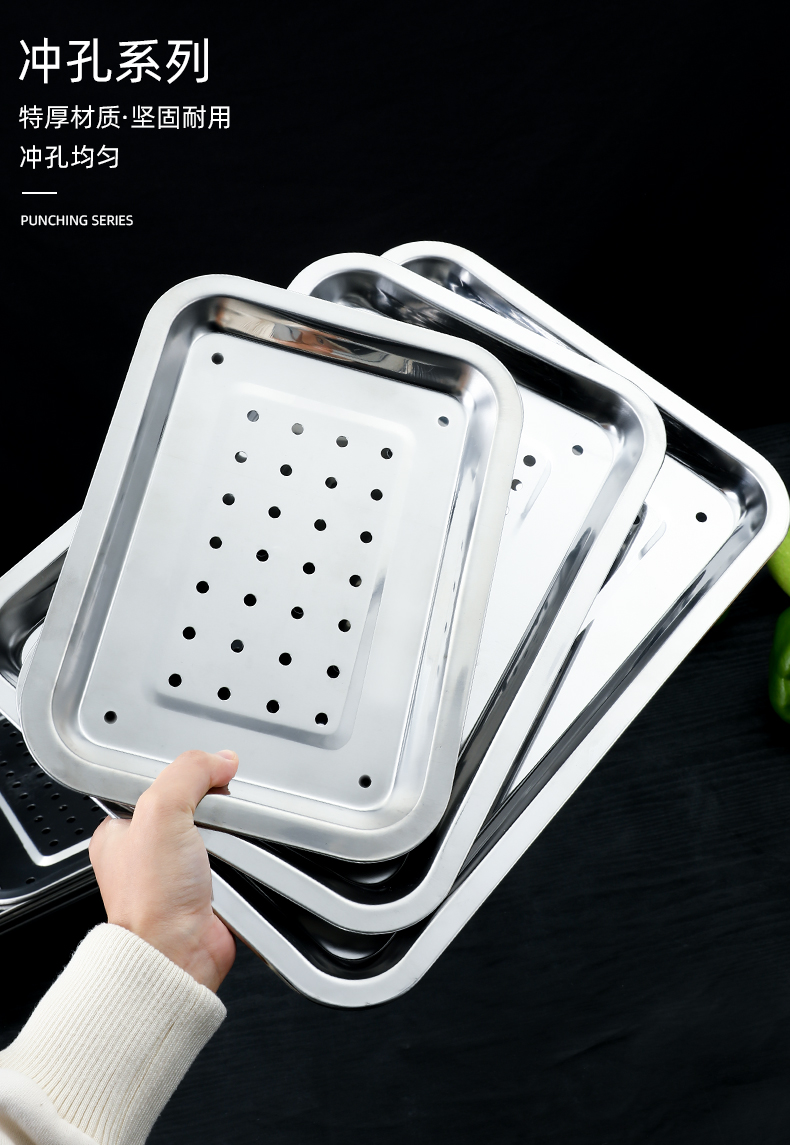 사각 접시 스테인레스 스틸 플레이트 직사각형 트레이 철판 바베큐 상업용 가정용 주방 접시 누출 된 접시 두꺼운 차 접시