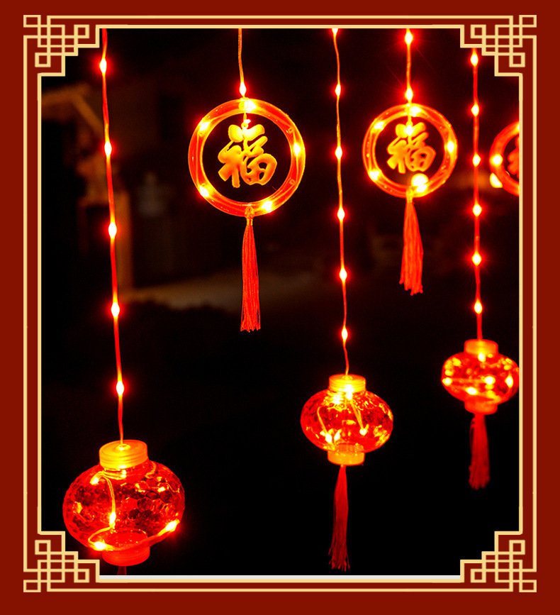 Led 새해 커튼 빛 2024 드래곤 년 레드 랜턴 분위기 축제 빛 끈 봄 축제 축제 장식 포춘 빛스토어 가기