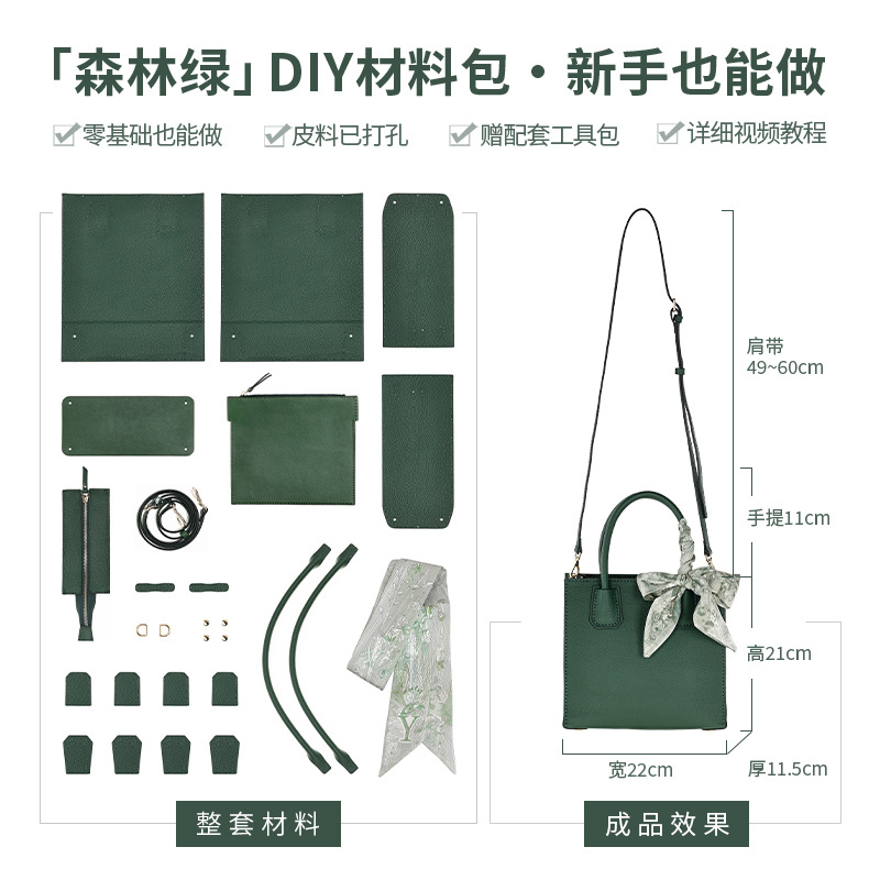 • 포레스트 그린★재료 패키지★리얼 소가죽★무료 튜토리얼 비디오 + 툴킷