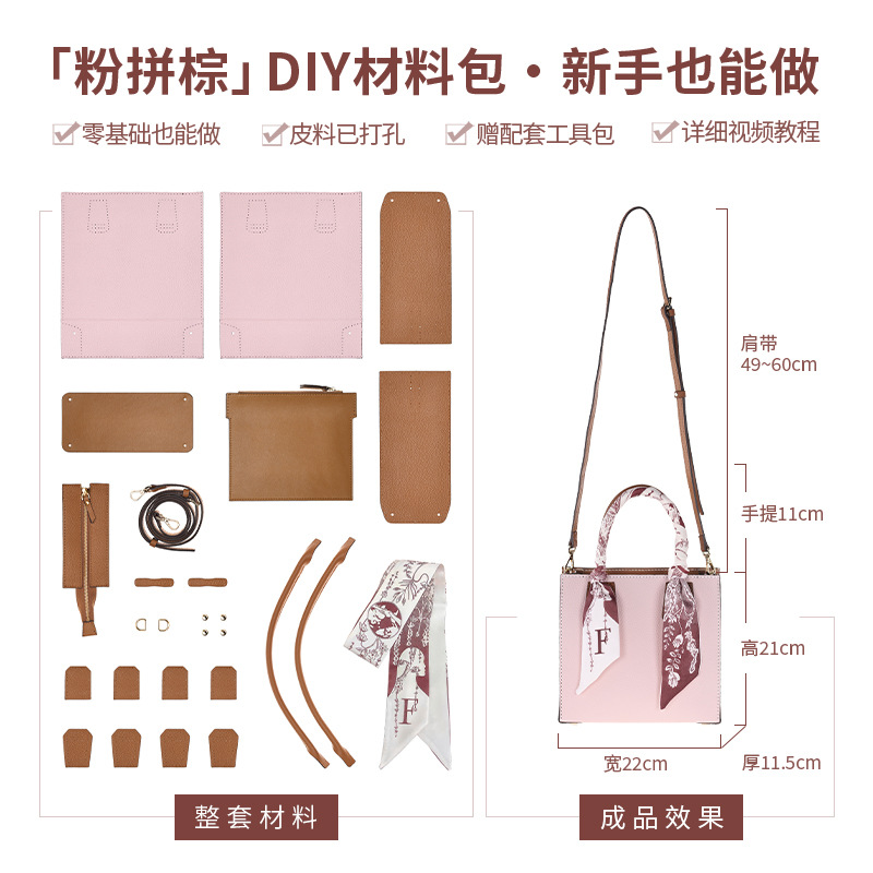• 핑크 및 다크 브라운★재료 패키지★리얼 소가죽★무료 튜토리얼 비디오 + 툴킷