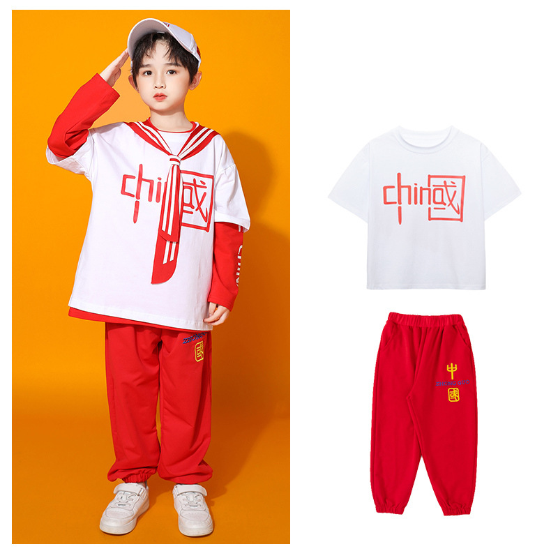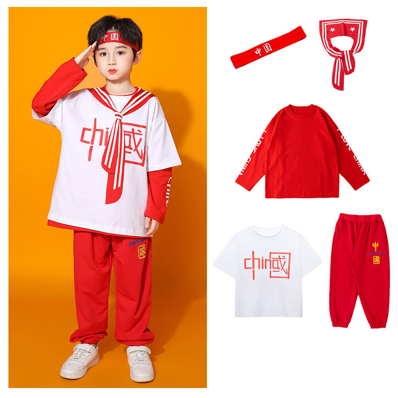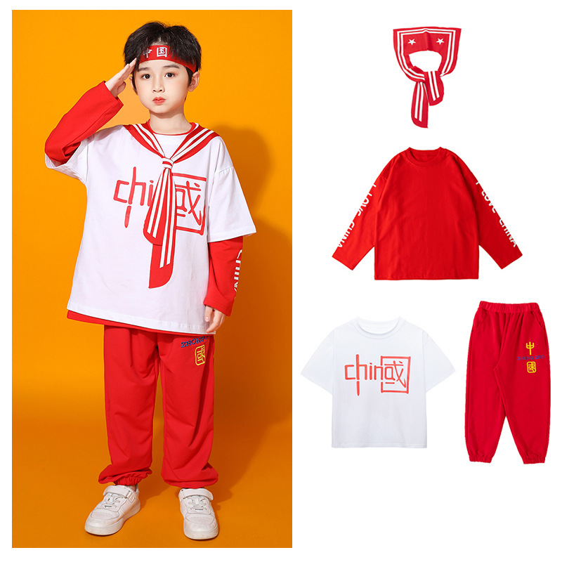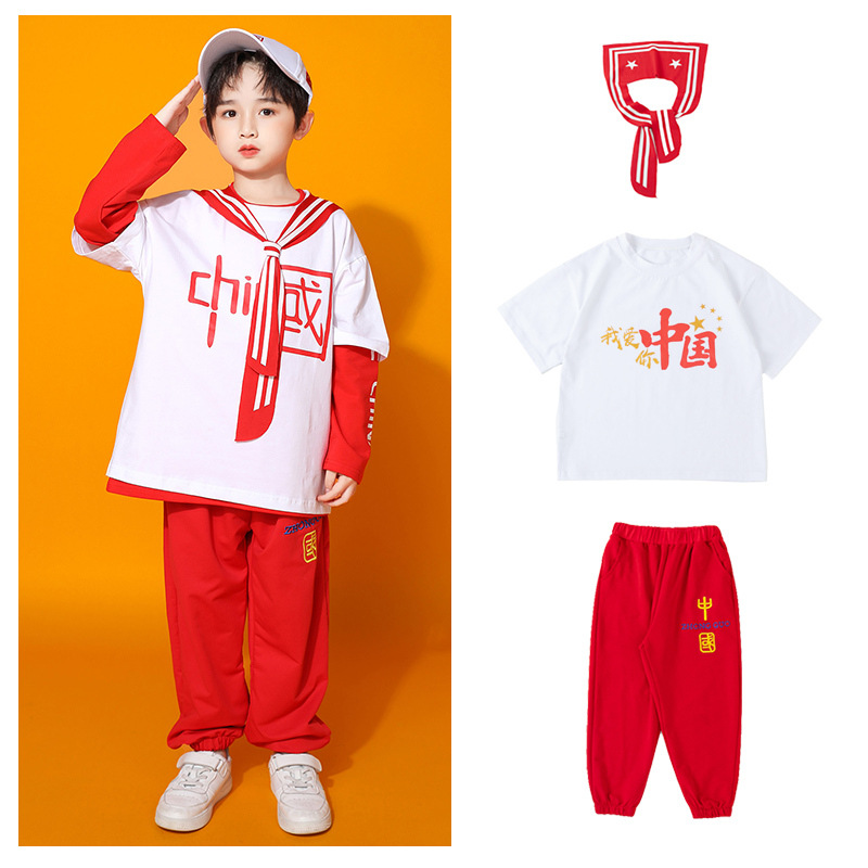 • 8196 흰색 중국 반팔 + 8208 빨간색 중국 바지 + 빨간색 스카프