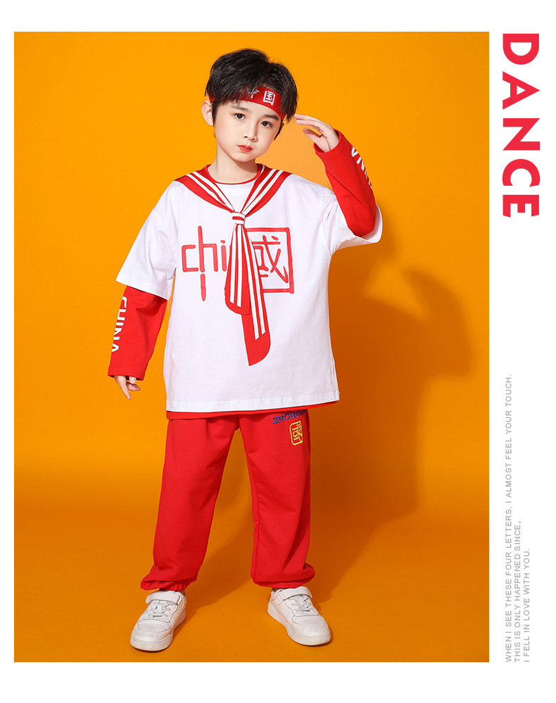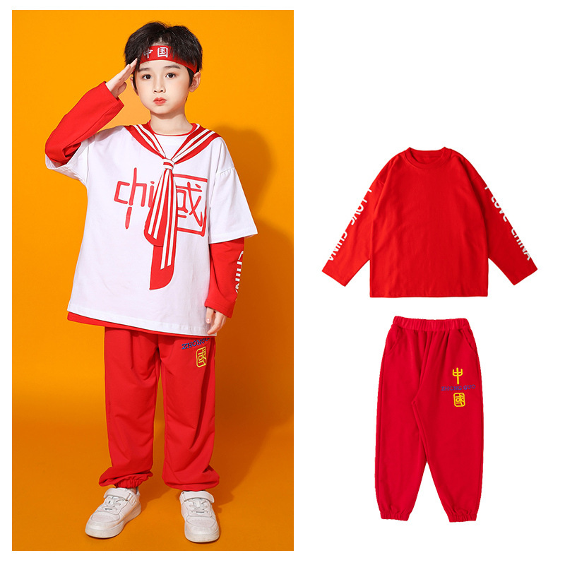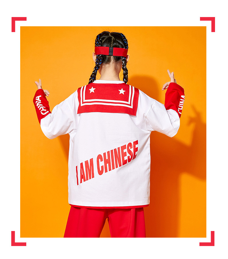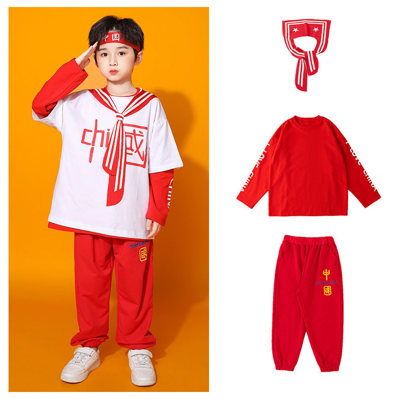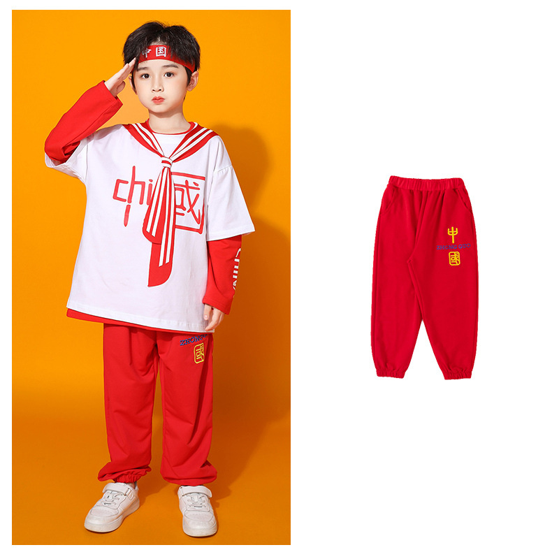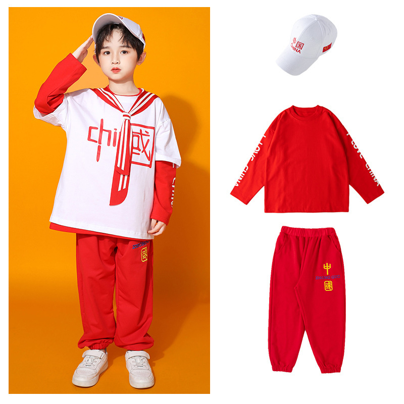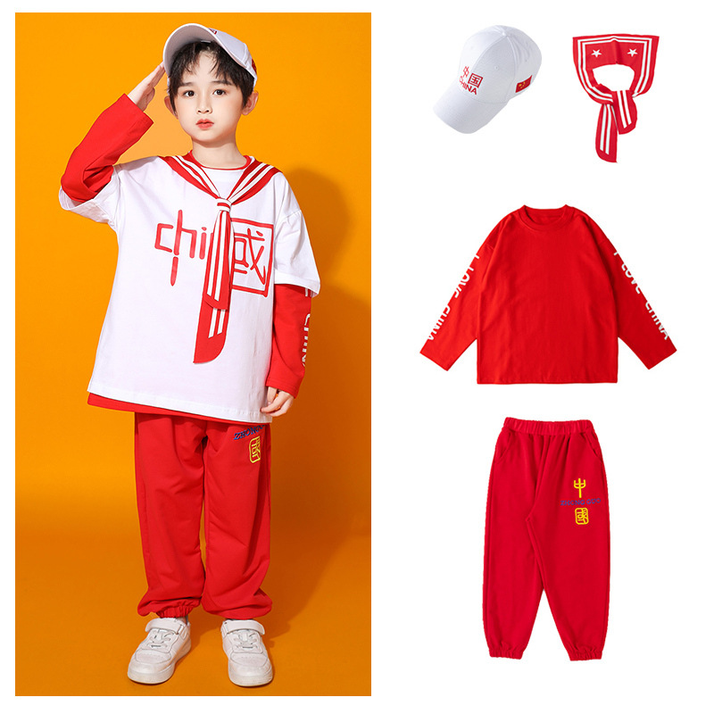 • 8509 레드 스웨터 + 8208 레드 중국 바지 + 스칼렛 문자 중국 흰색 야구 모자 + 레드 스카프