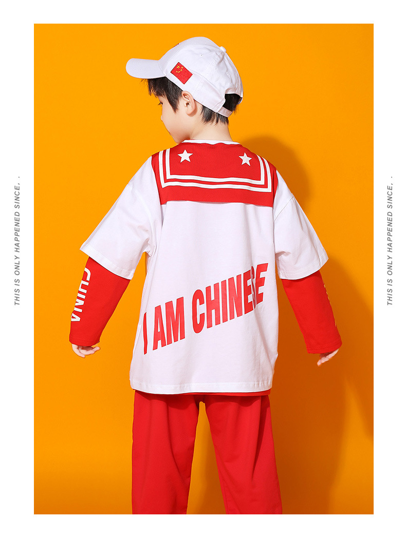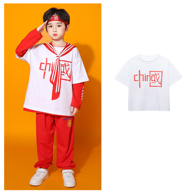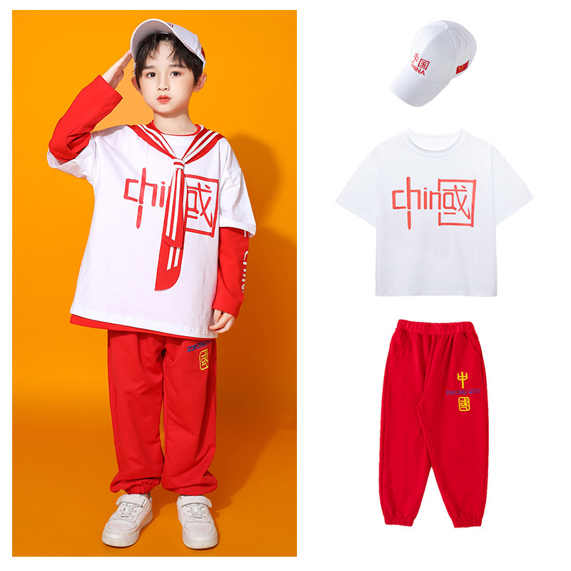 • 8196 흰색 중국 반팔 + 8208 빨간색 중국 바지 + 주홍색 문자 중국어 흰색 야구 모자