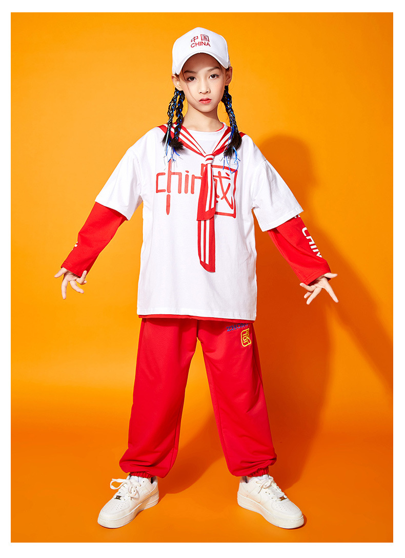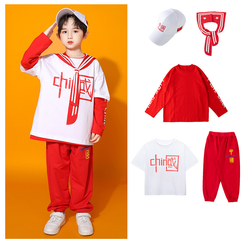 • 8196 흰색 중국 반팔 + 8208 빨간색 중국 바지 + 주홍색 문자 중국어 흰색 야구 모자 + 빨간색 스카프