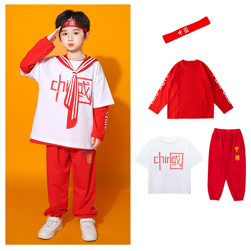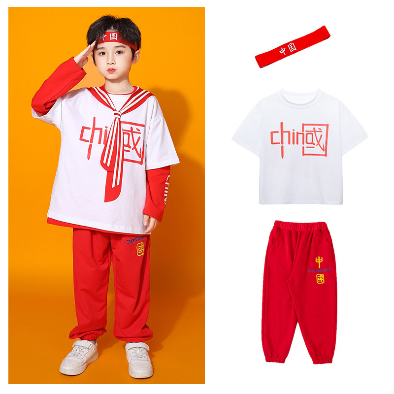 • 8196 흰색 중국 반팔 + 8509 빨간색 스웨터 + 8208 빨간색 중국 바지 + 중국 헤어 밴드