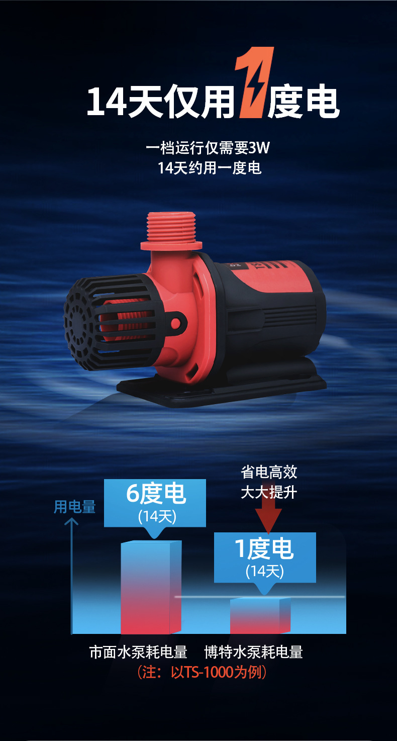 • [저전압 12v • 초저소음 9W] 유량 300-1000L 조정 가능한 TS-1000