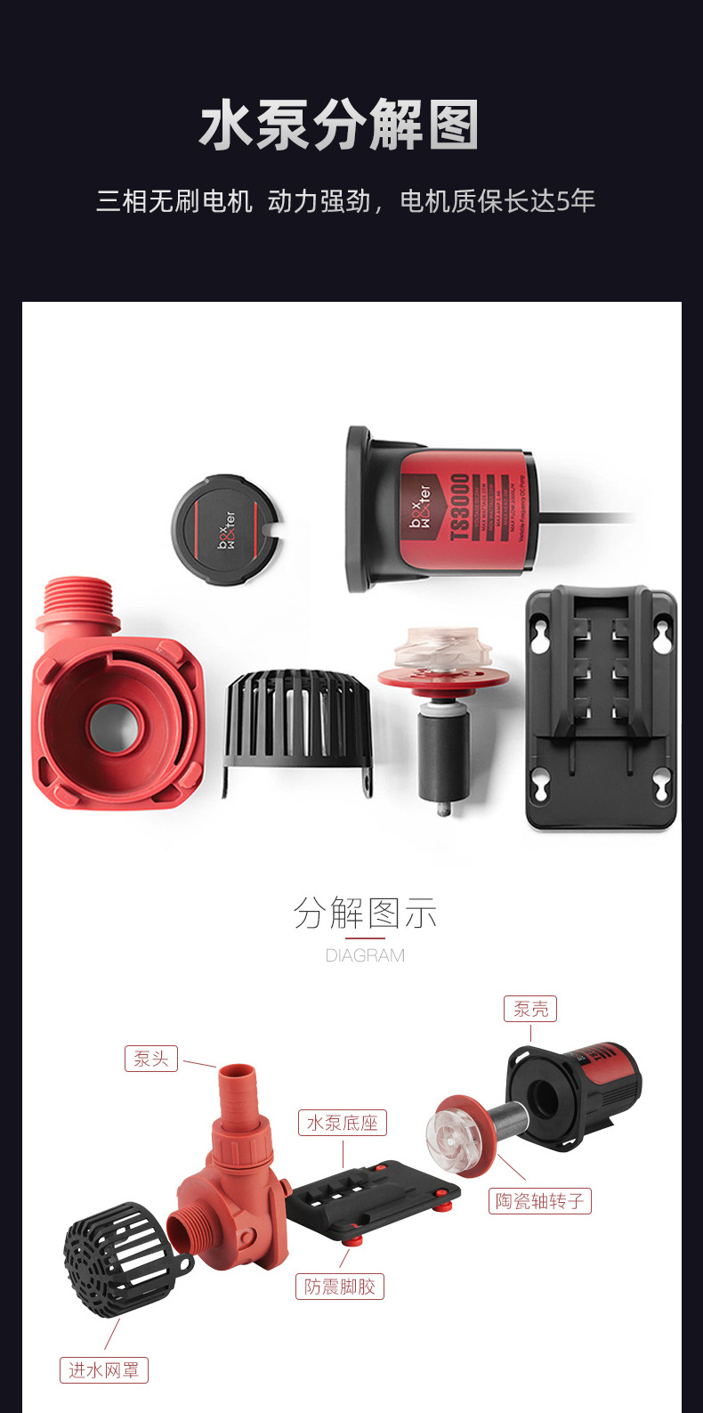 • [저전압 24v 초저소음 35W] 유량 900-3000 조정 가능한 TS-3000