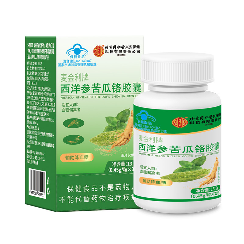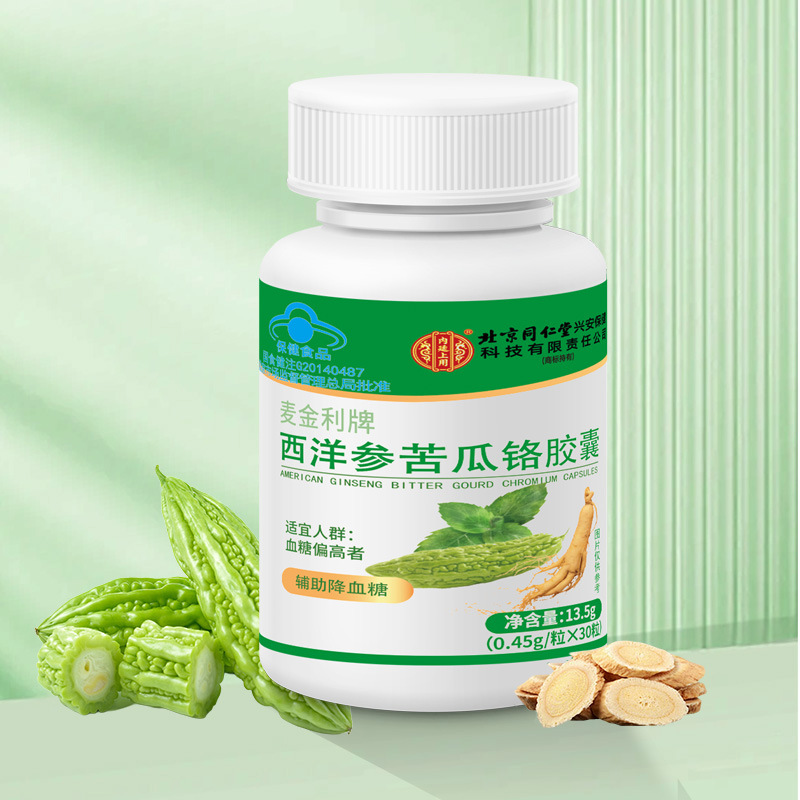 베이징 Tongrentang의 내부 법원에서 혈액 지질을 줄이기위한 미국식 인삼과 모모 디카 구르드 크롬 캡슐 30 캡슐