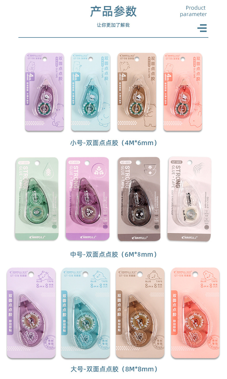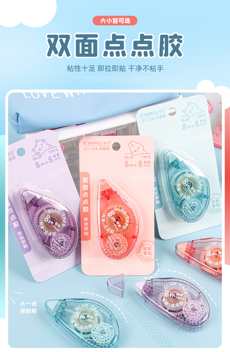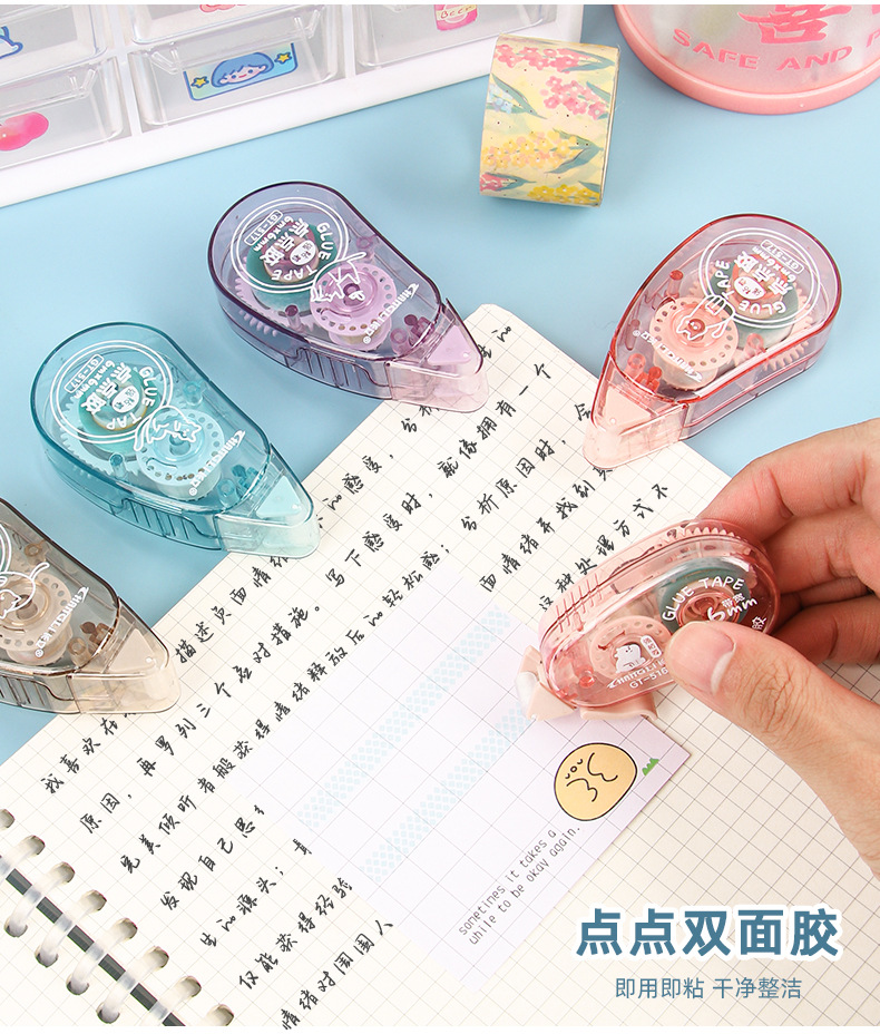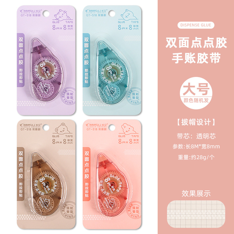 In 투명 도트 접착제 높은 색상 가치 손 계정 양면 접착 학생 귀여운 DIY 수제 지울 수있는 도트 테이프 도매