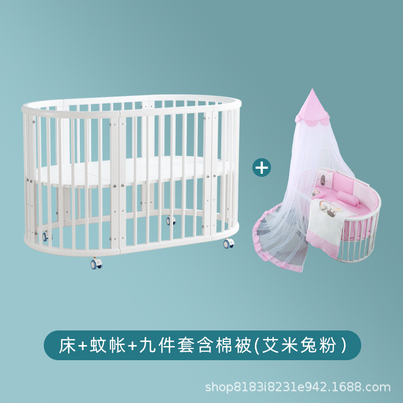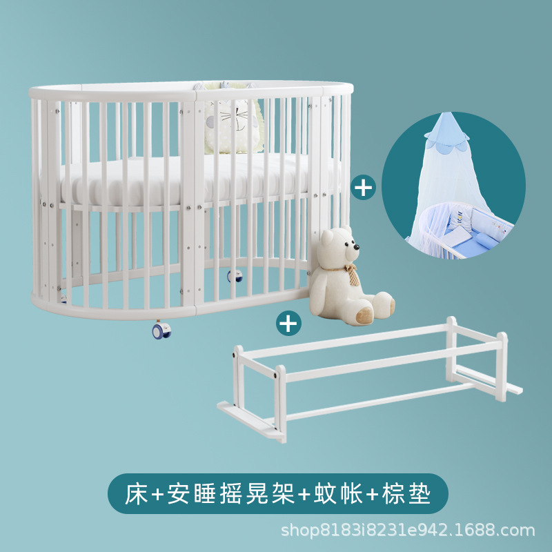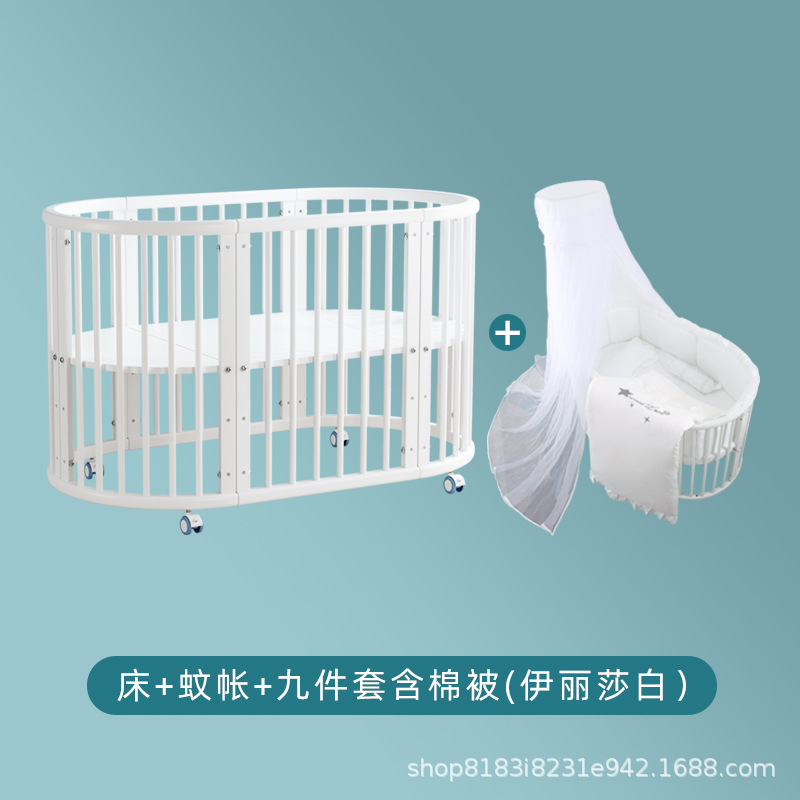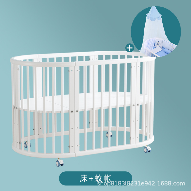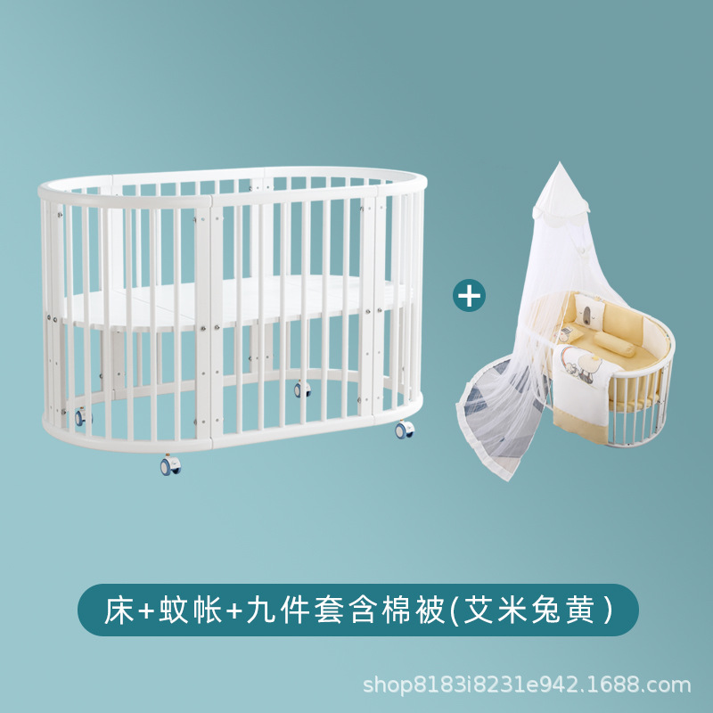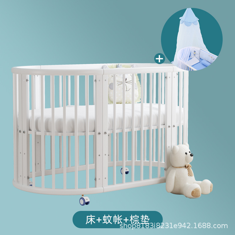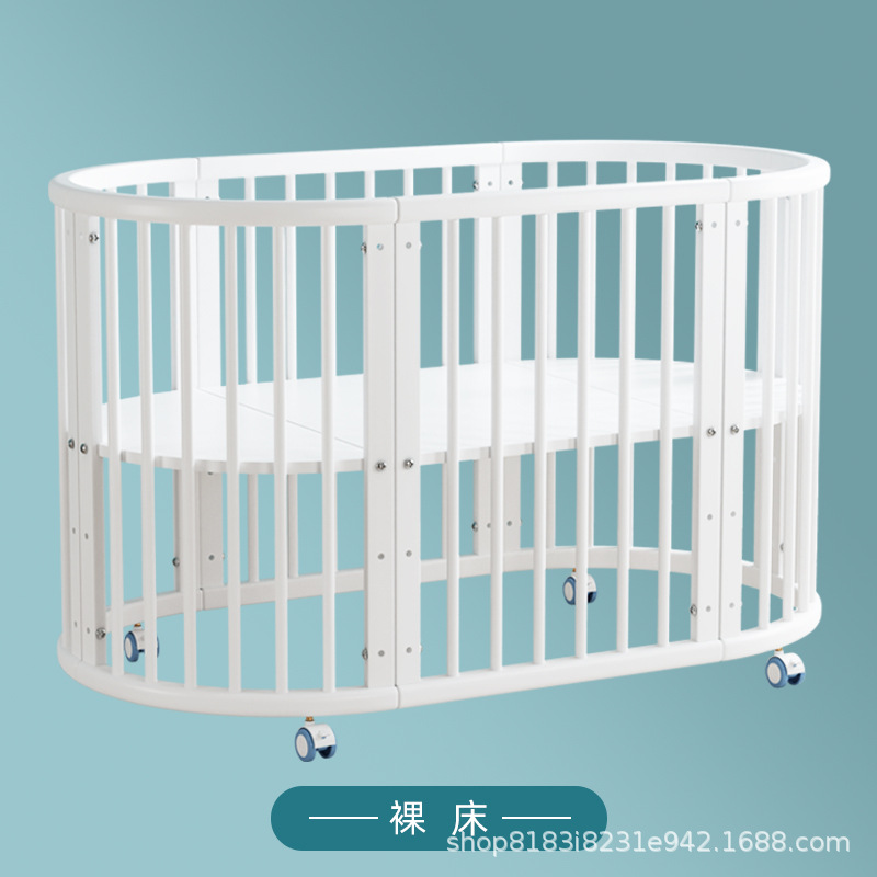 아기 침대 단단한 나무 유럽 스타일의 스티칭 침대 이동식 신생아 작은 침대 다기능 흰색 작은 둥근 침대스토어 가기