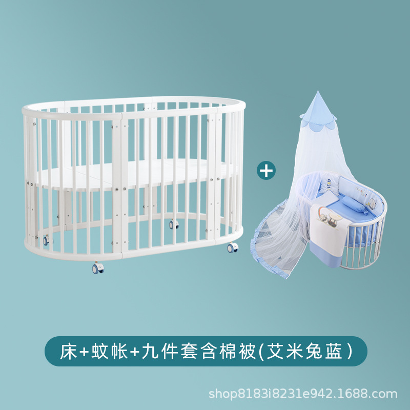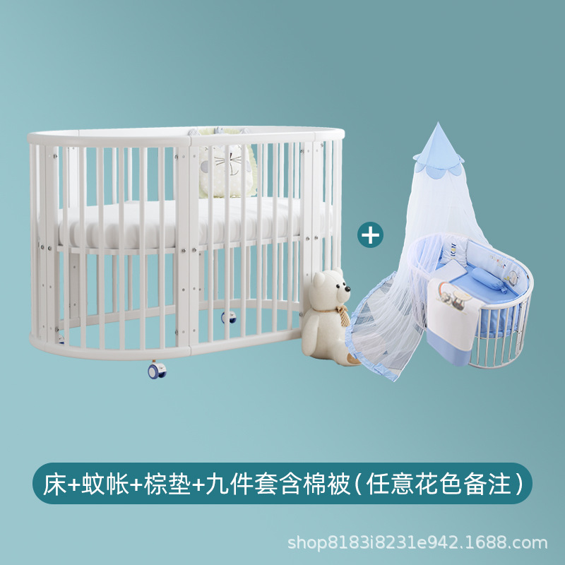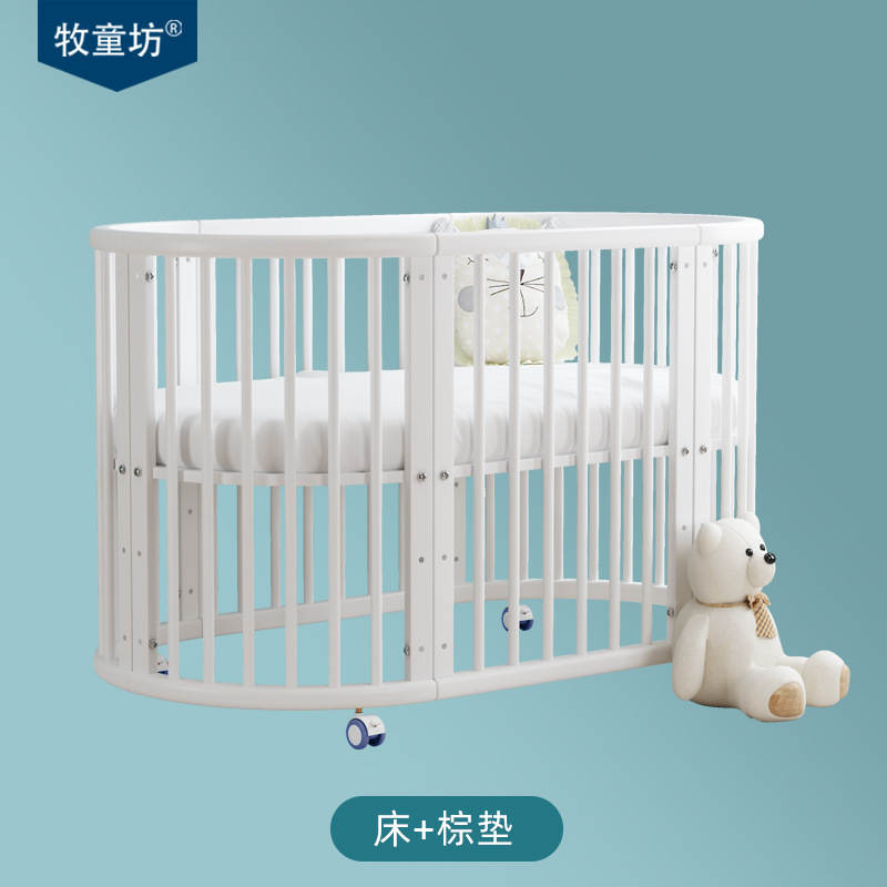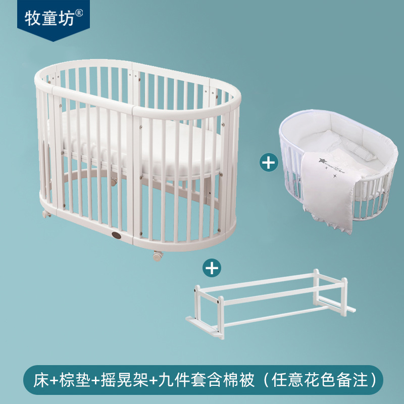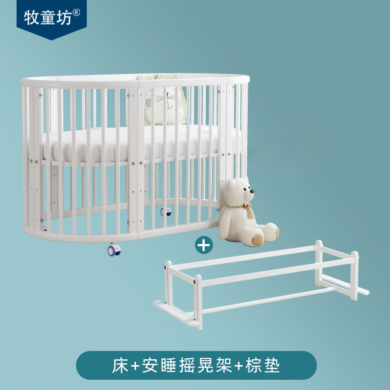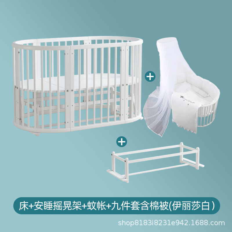 아기 침대 단단한 나무 유럽 스타일의 스티칭 침대 이동식 신생아 작은 침대 다기능 흰색 작은 둥근 침대스토어 가기