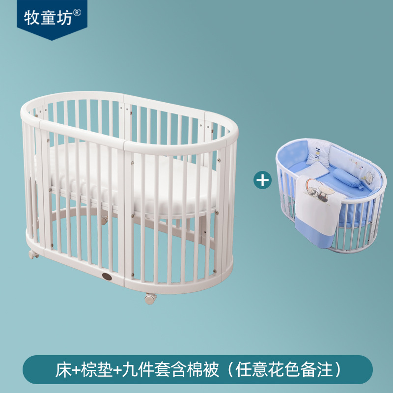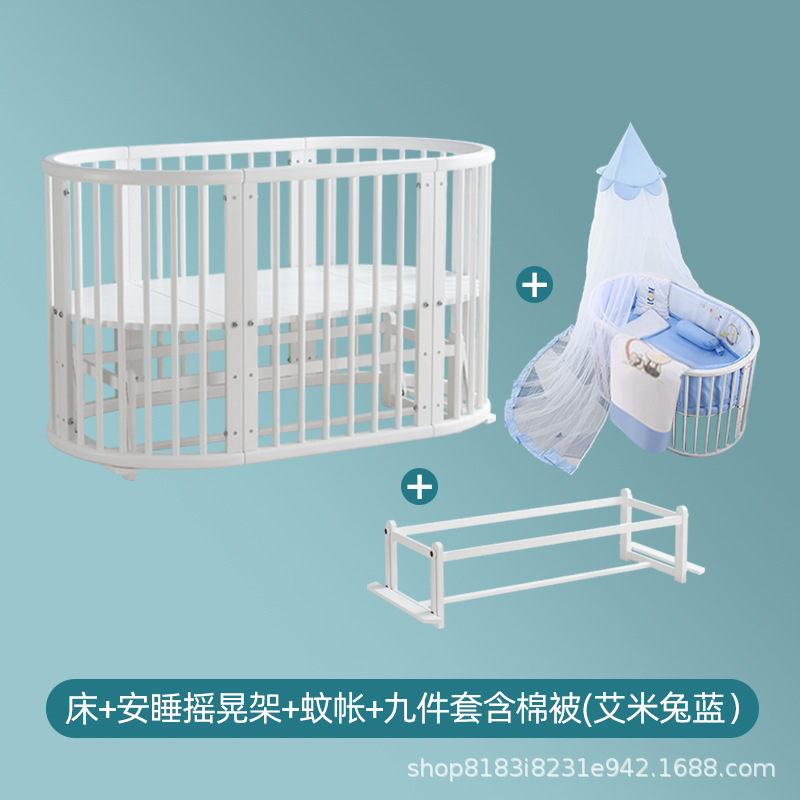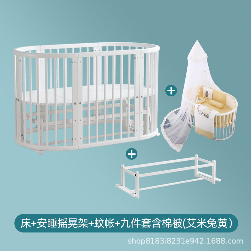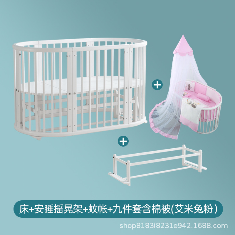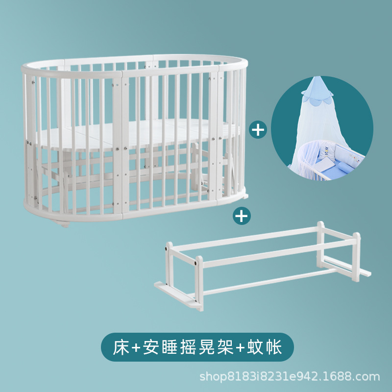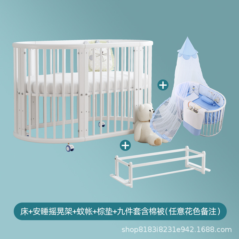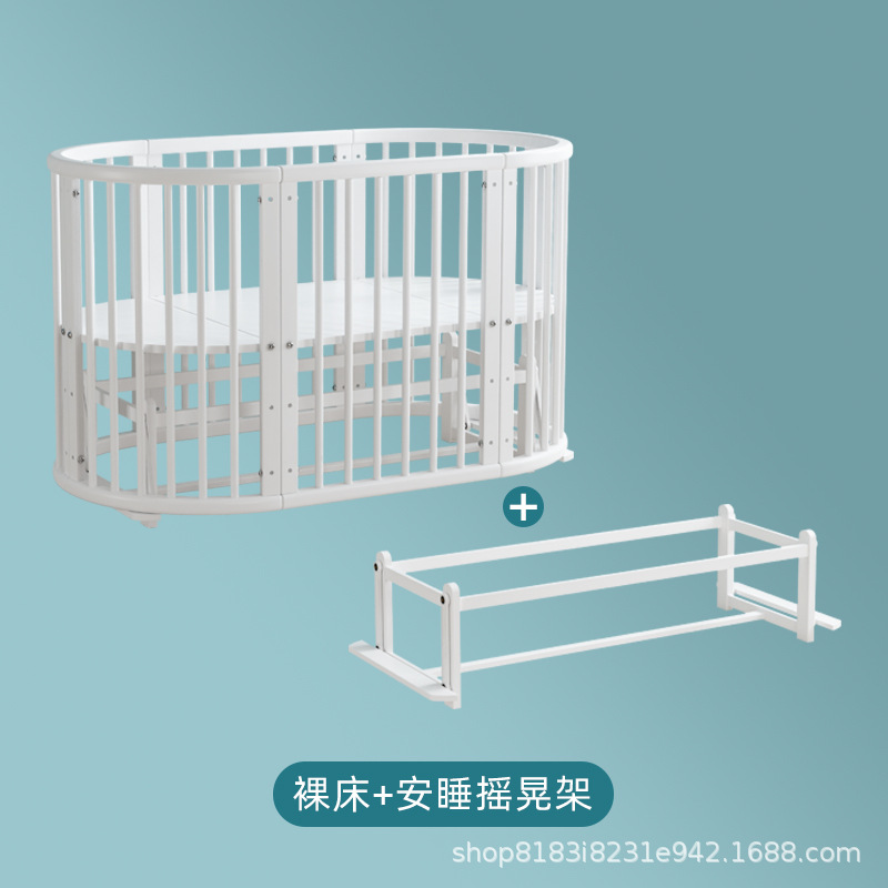 아기 침대 단단한 나무 유럽 스타일의 스티칭 침대 이동식 신생아 작은 침대 다기능 흰색 작은 둥근 침대스토어 가기