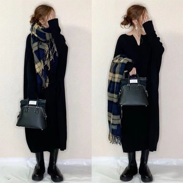 2025 가을 겨울 신상 한국 스타일 통근용 단색 원피스 여성 긴팔 슬림핏 우아한 직장복스토어 가기