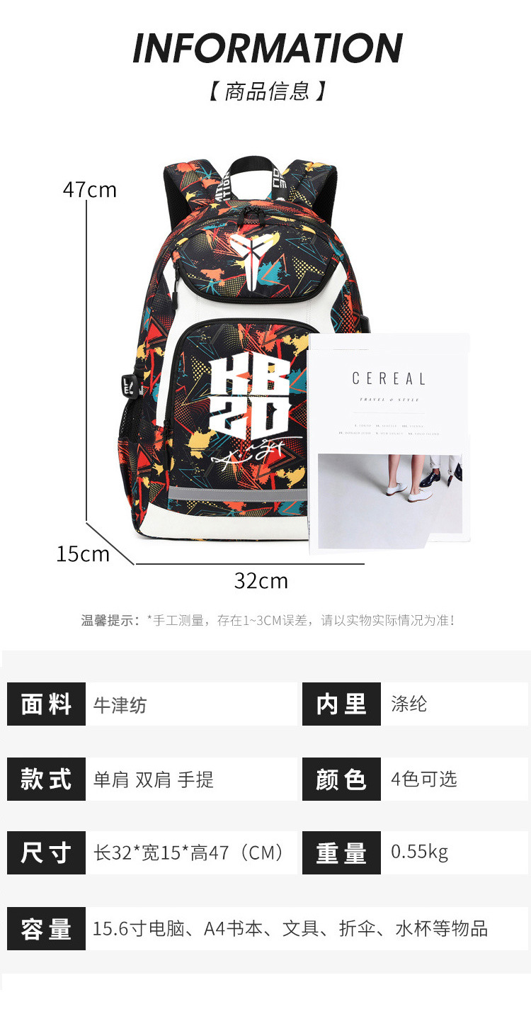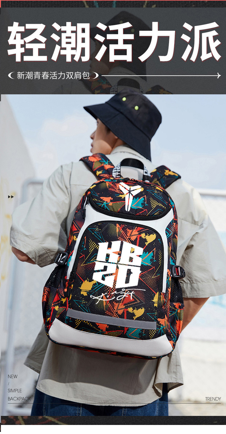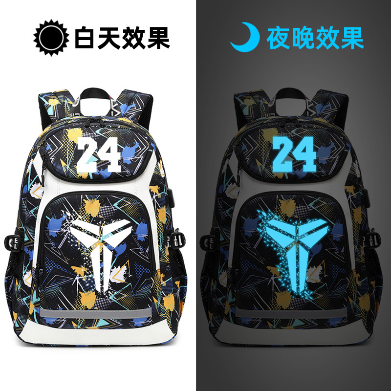 고베 배낭 남자의 트렌디 한 패션 빛나는 배낭 학생 책가방 중학교 농구 가방 훈련 배낭
