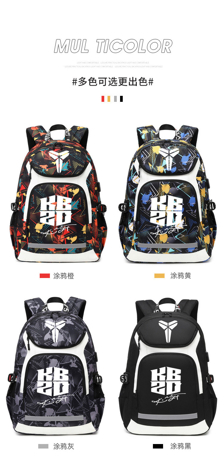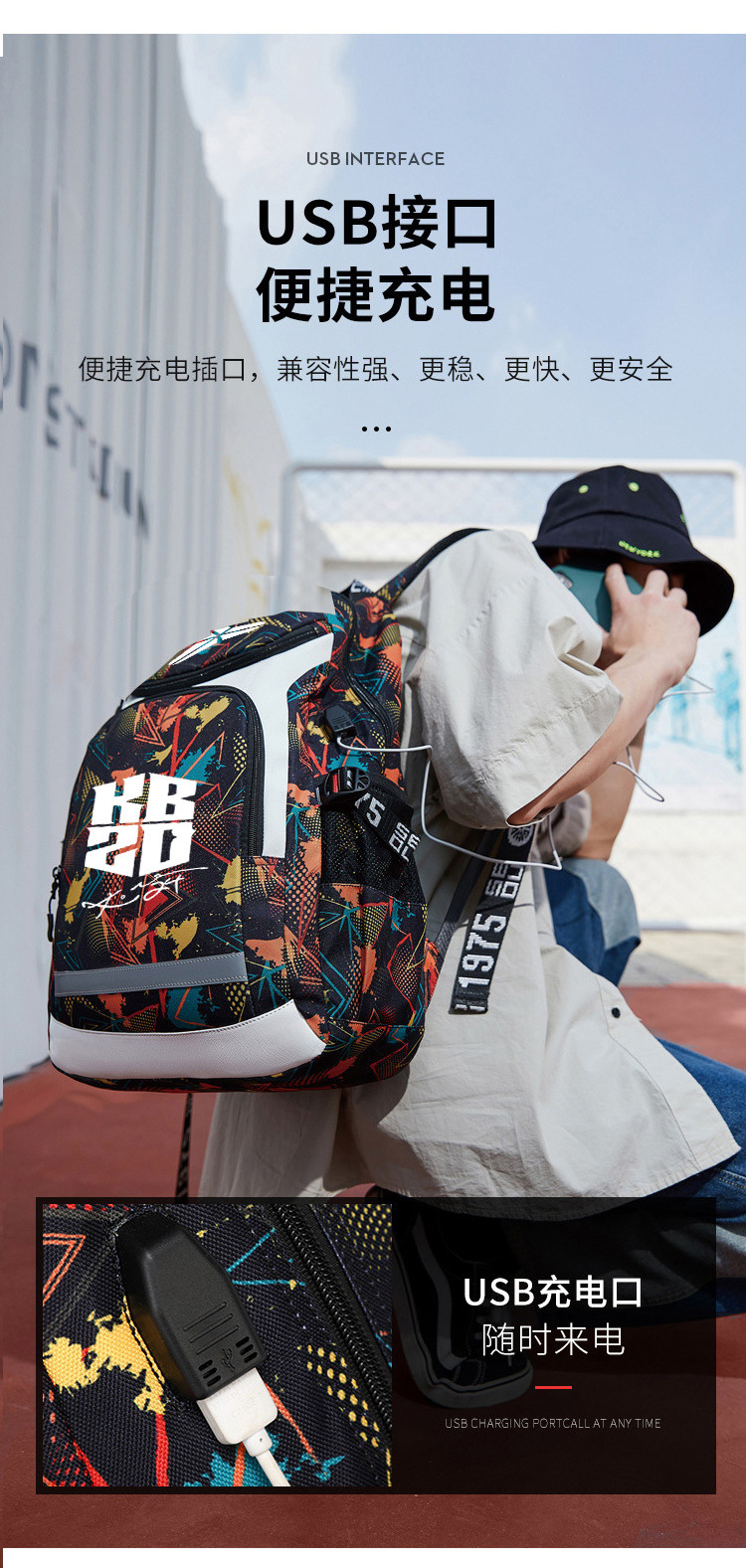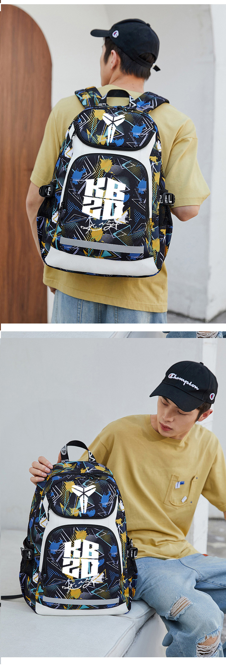 고베 배낭 남자의 트렌디 한 패션 빛나는 배낭 학생 책가방 중학교 농구 가방 훈련 배낭