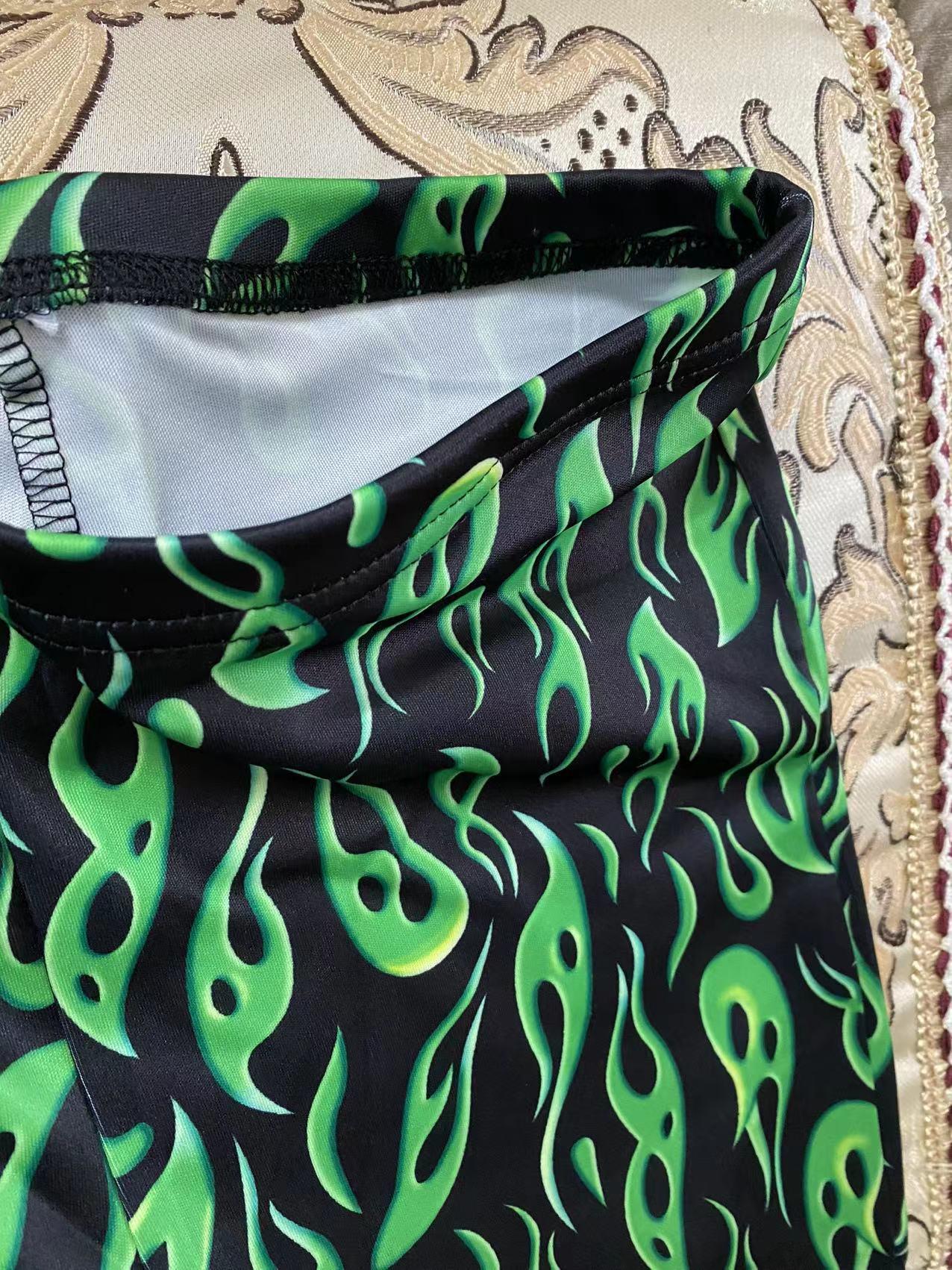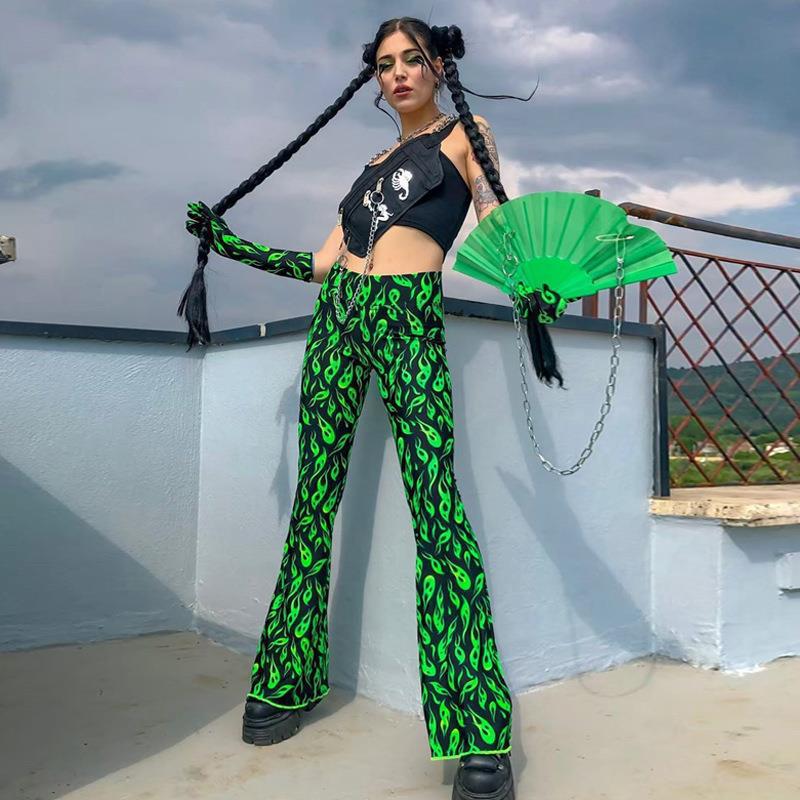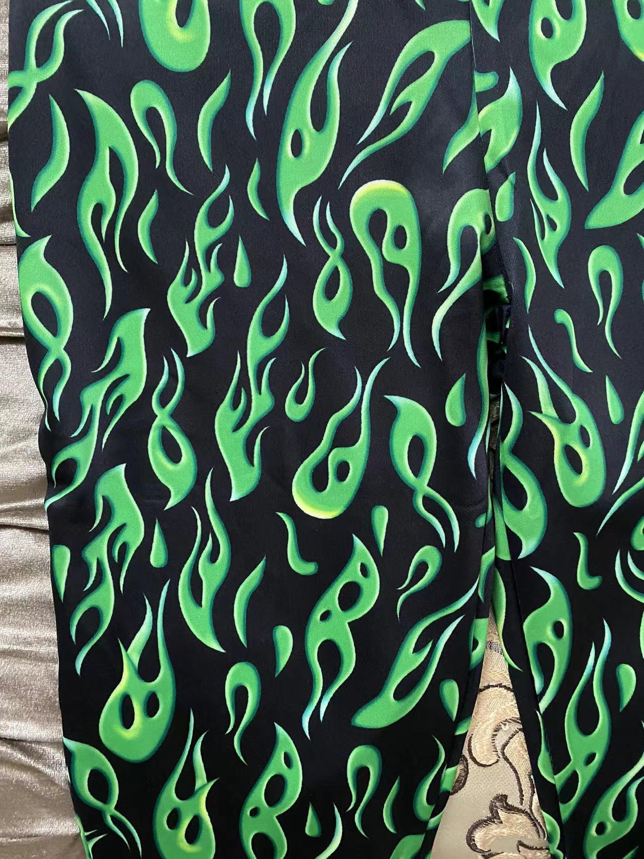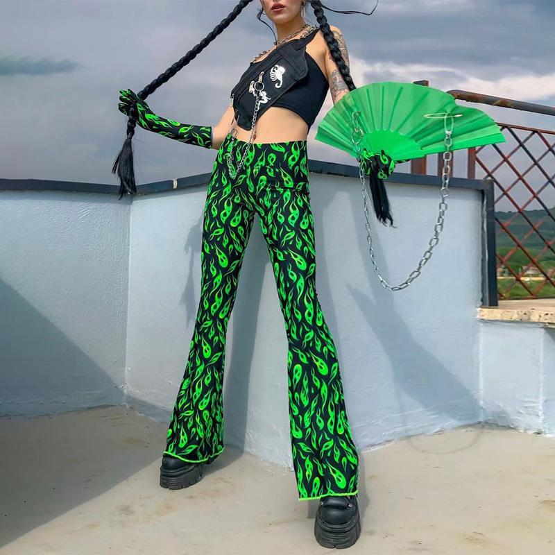 국경 간 대외 무역 2023 봄 AliExpress 유럽 및 미국 인쇄 과일 녹색 플레어 팬츠 새로운 타이트 캐주얼 바지스토어 가기
