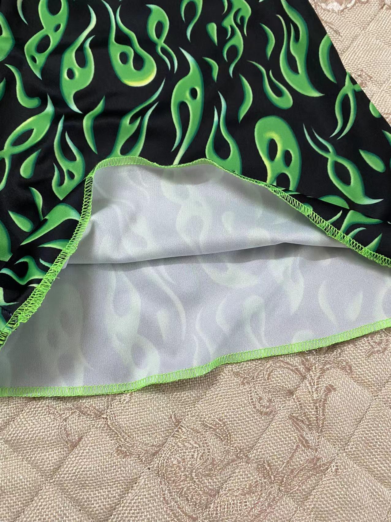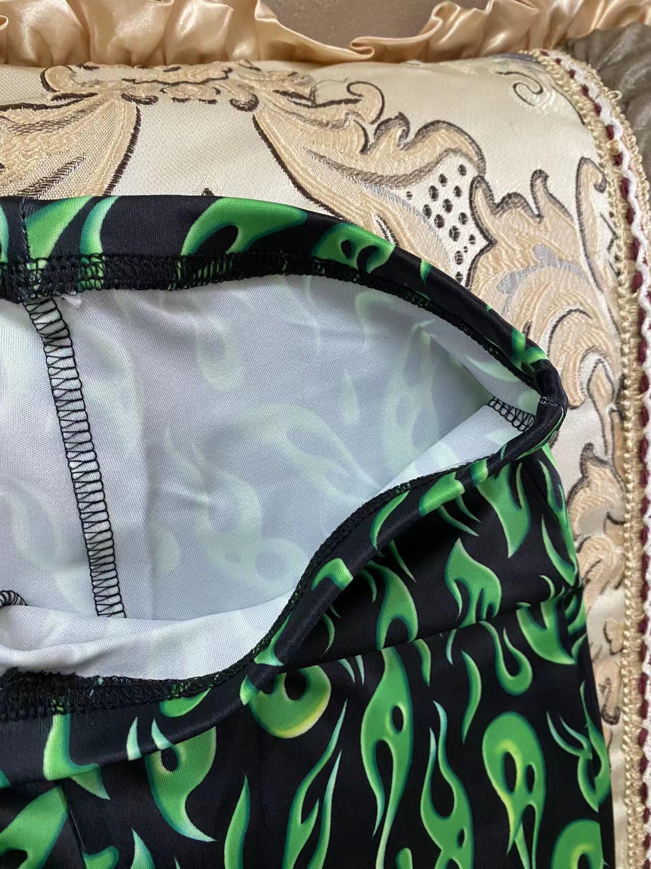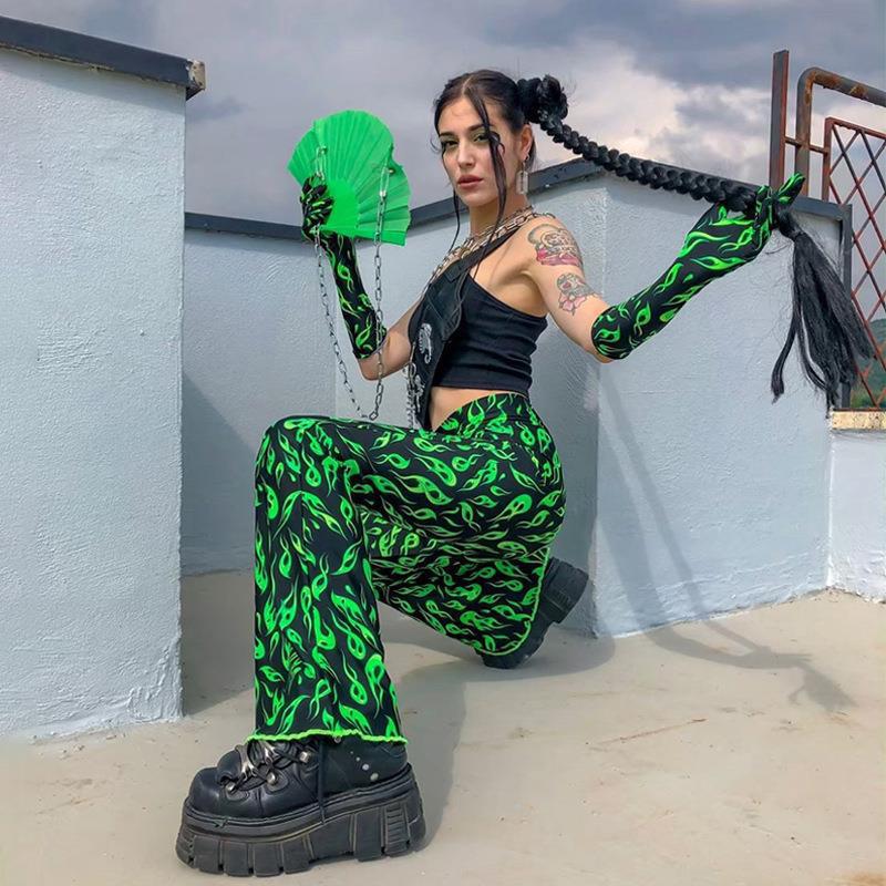 국경 간 대외 무역 2023 봄 AliExpress 유럽 및 미국 인쇄 과일 녹색 플레어 팬츠 새로운 타이트 캐주얼 바지스토어 가기