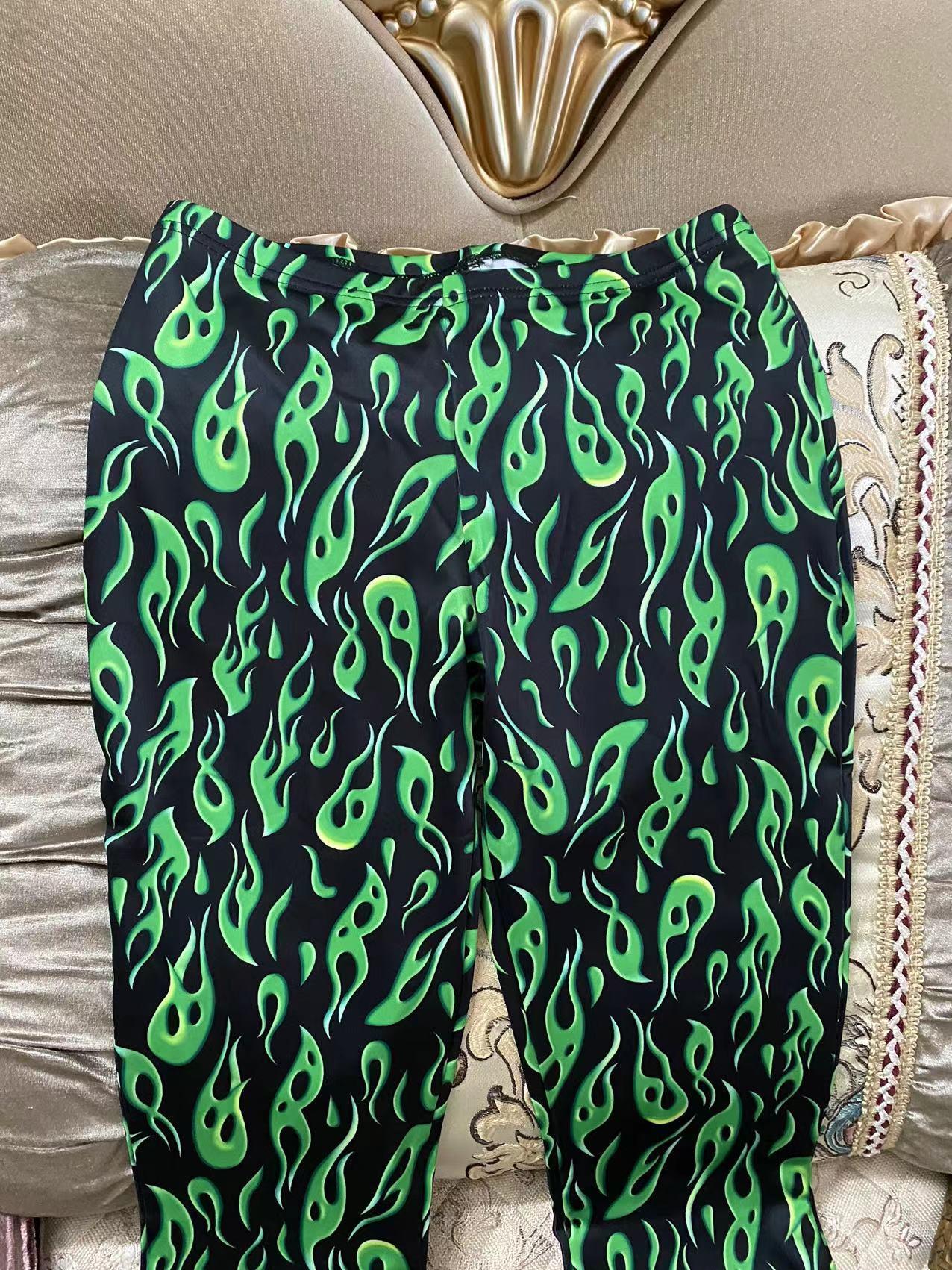 국경 간 대외 무역 2023 봄 AliExpress 유럽 및 미국 인쇄 과일 녹색 플레어 팬츠 새로운 타이트 캐주얼 바지