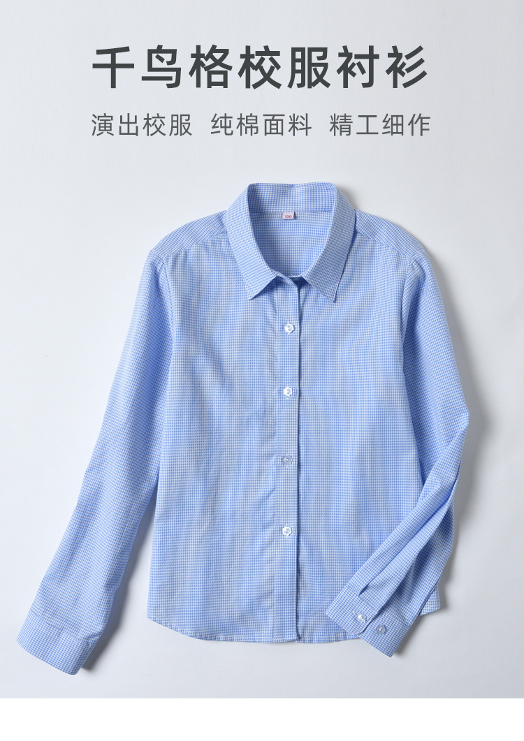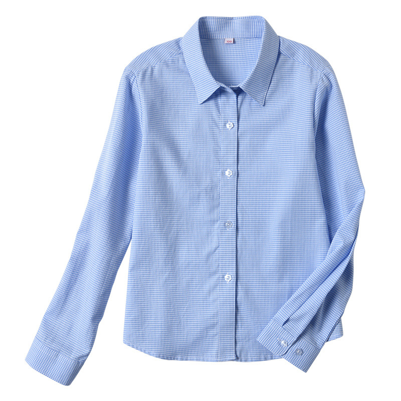 어린이 교복 셔츠 초등 및 중등 학생을위한 여아 면 긴팔 탑 스쿨 스타일 Houndstooth 블루 격자 무늬 셔츠
