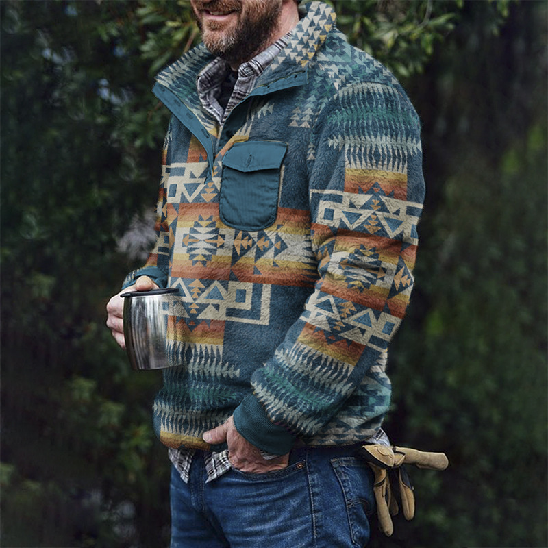 2022 대외 무역 독립 역 가을/겨울 남성 유럽 및 미국 캐주얼 플란넬 플러시 스웨터 버튼 포켓 스웨터