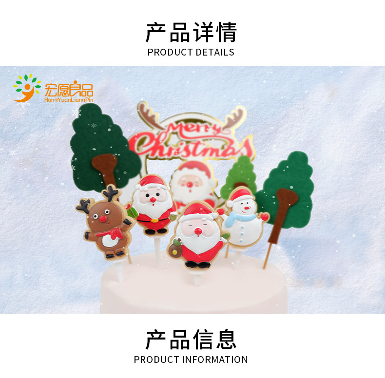 크리스마스 케이크 단면 장식 플러그인 산타 클로스 엘크 눈사람 달콤한 수지 장식품 DIY 창조적 인 선물 1