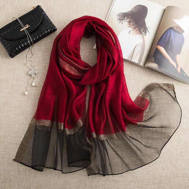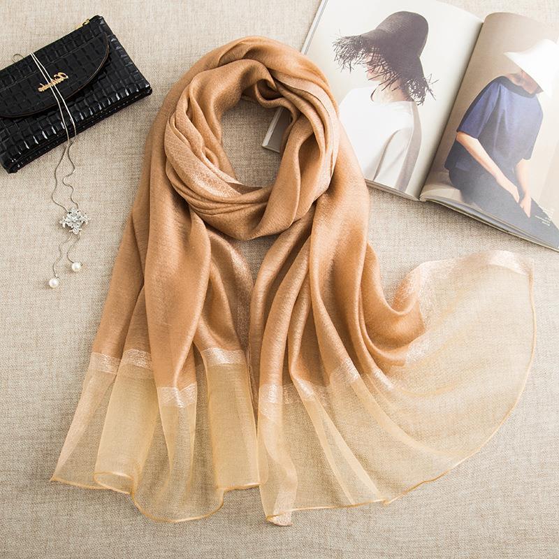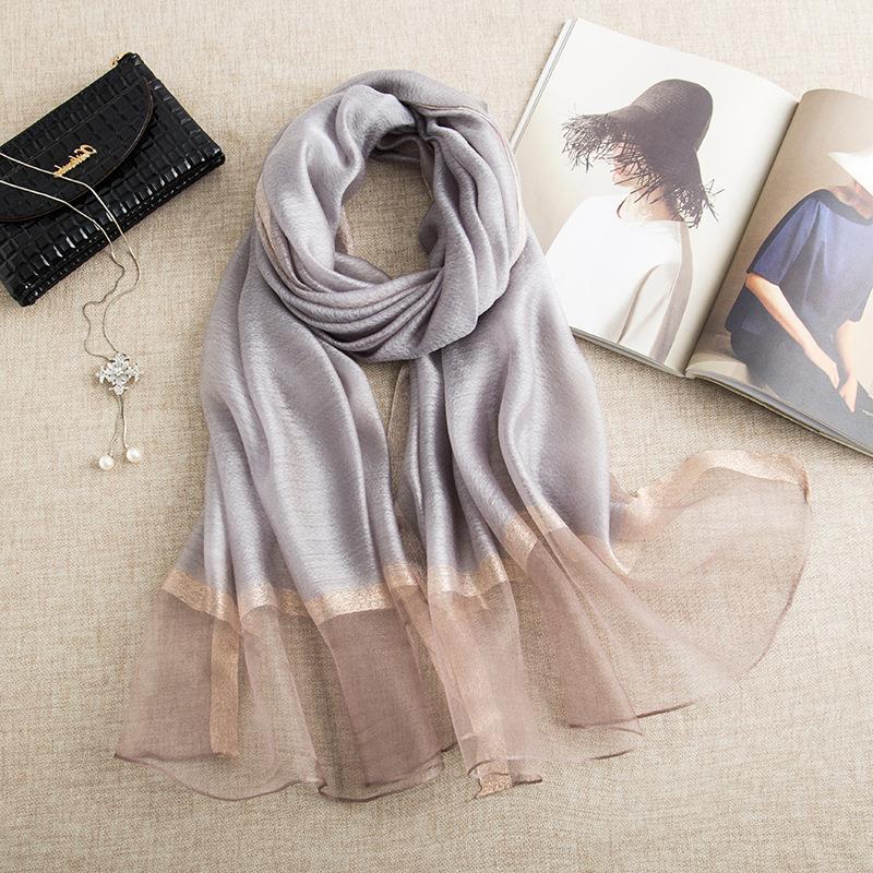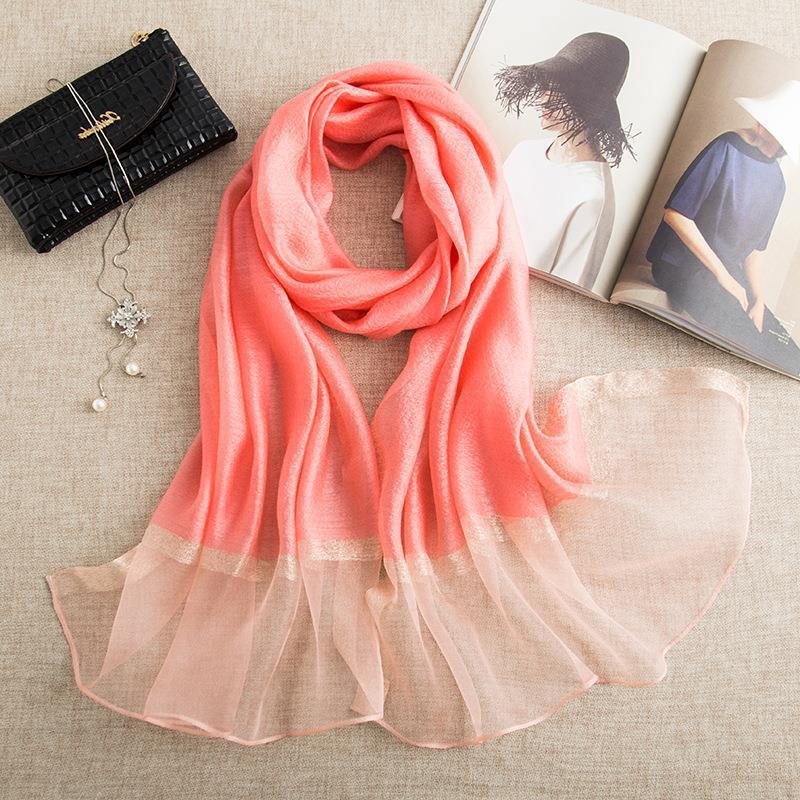 새로운 프놈펜 뽕나무 실크 스카프 여성용 단색 실크 스카프 스티칭 모든 매치 우아한 숄 여행 비치 타올 여성스토어 가기