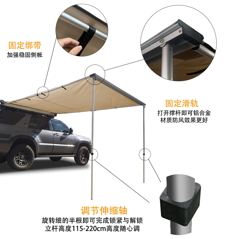 자동차 측면 텐트 캠핑 블랙 글로시 캐노피 휴대용 차양막 야외 SUV 오프로드 차량용 캐노피 사이드 텐트