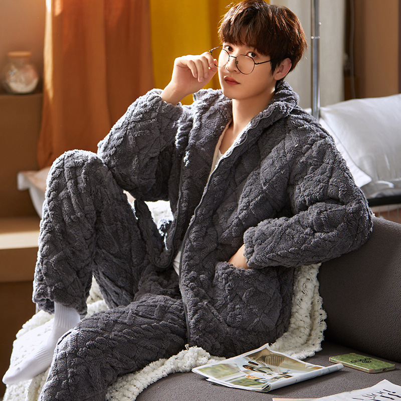 겨울 플란넬 퀼트 커플 잠옷 3 층 두꺼운 슈퍼 따뜻한 높은 칼라 지퍼 플러스 사이즈 남성과 여성의 가정 의류스토어 가기