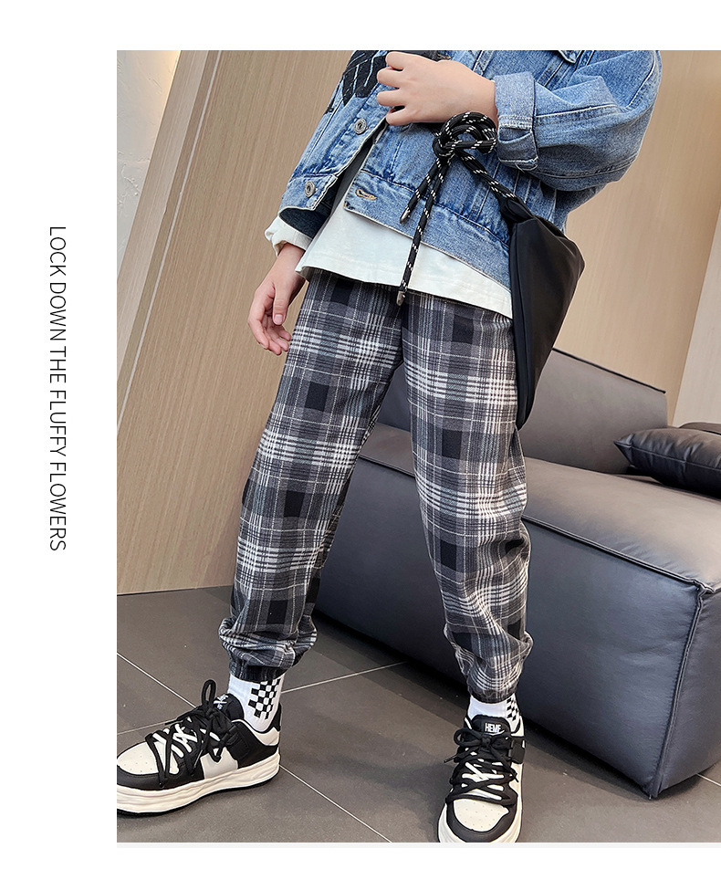 봄과 가을 캐주얼 바지 어린이 패션 트렌디 한 땀 바지 여름 격자 무늬 바지 소년 소녀스토어 가기