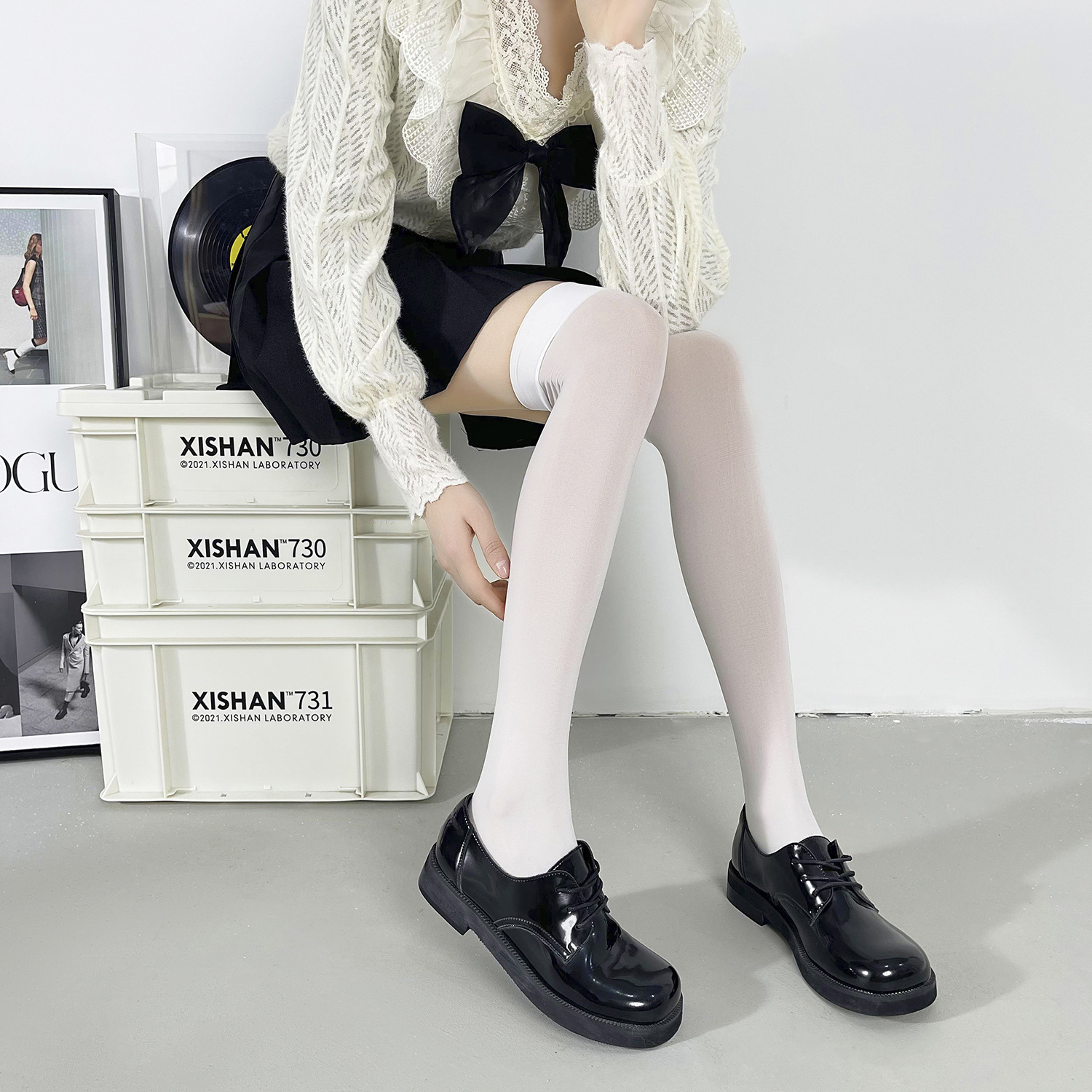 JK 양말, 여성용 한국 스타일 벨벳 봄, 여름, 가을 무릎 위 양말, 인터넷 인기 롱 양말, 세 가지 스타일의 양말 사이즈스토어 가기