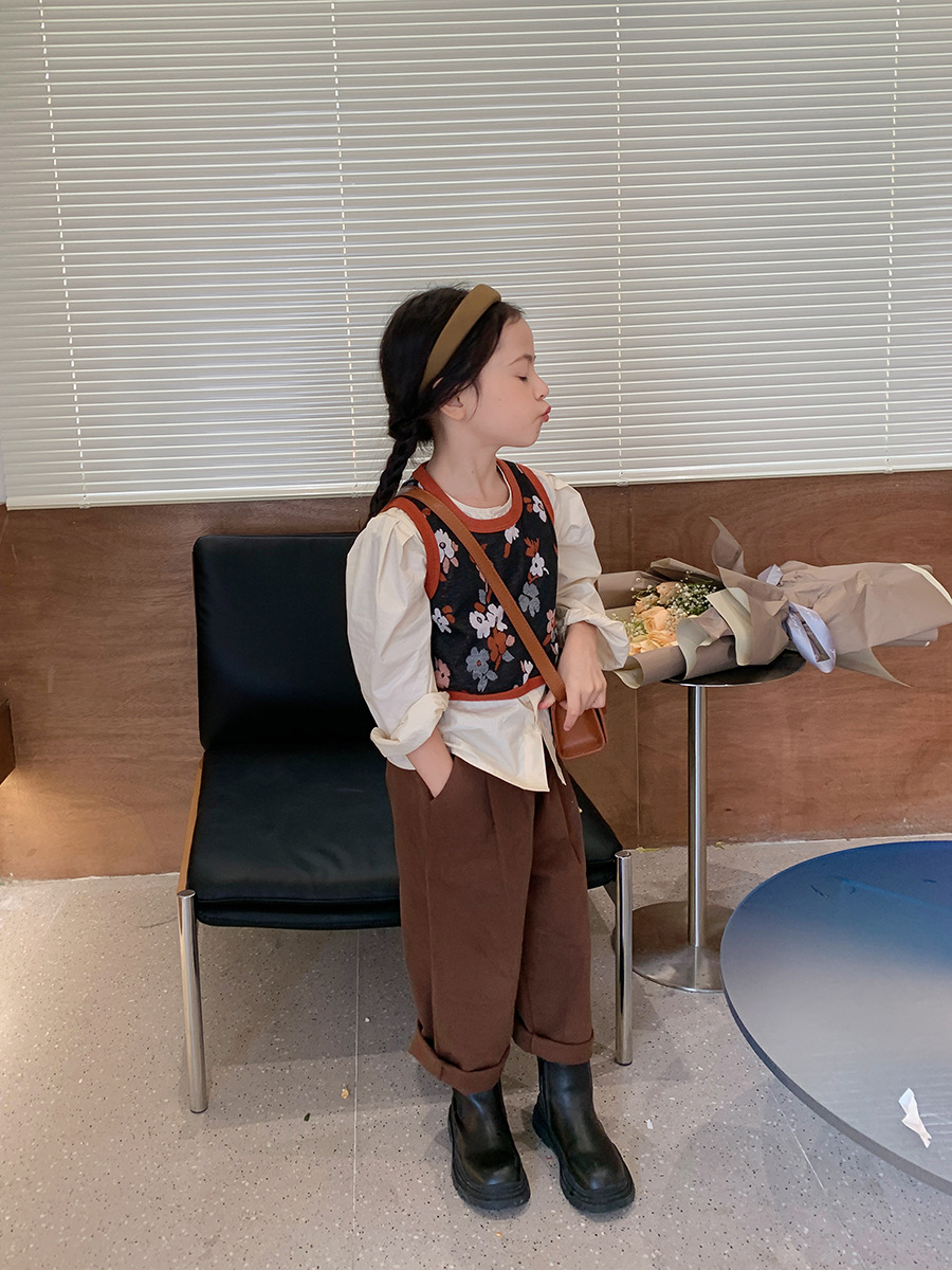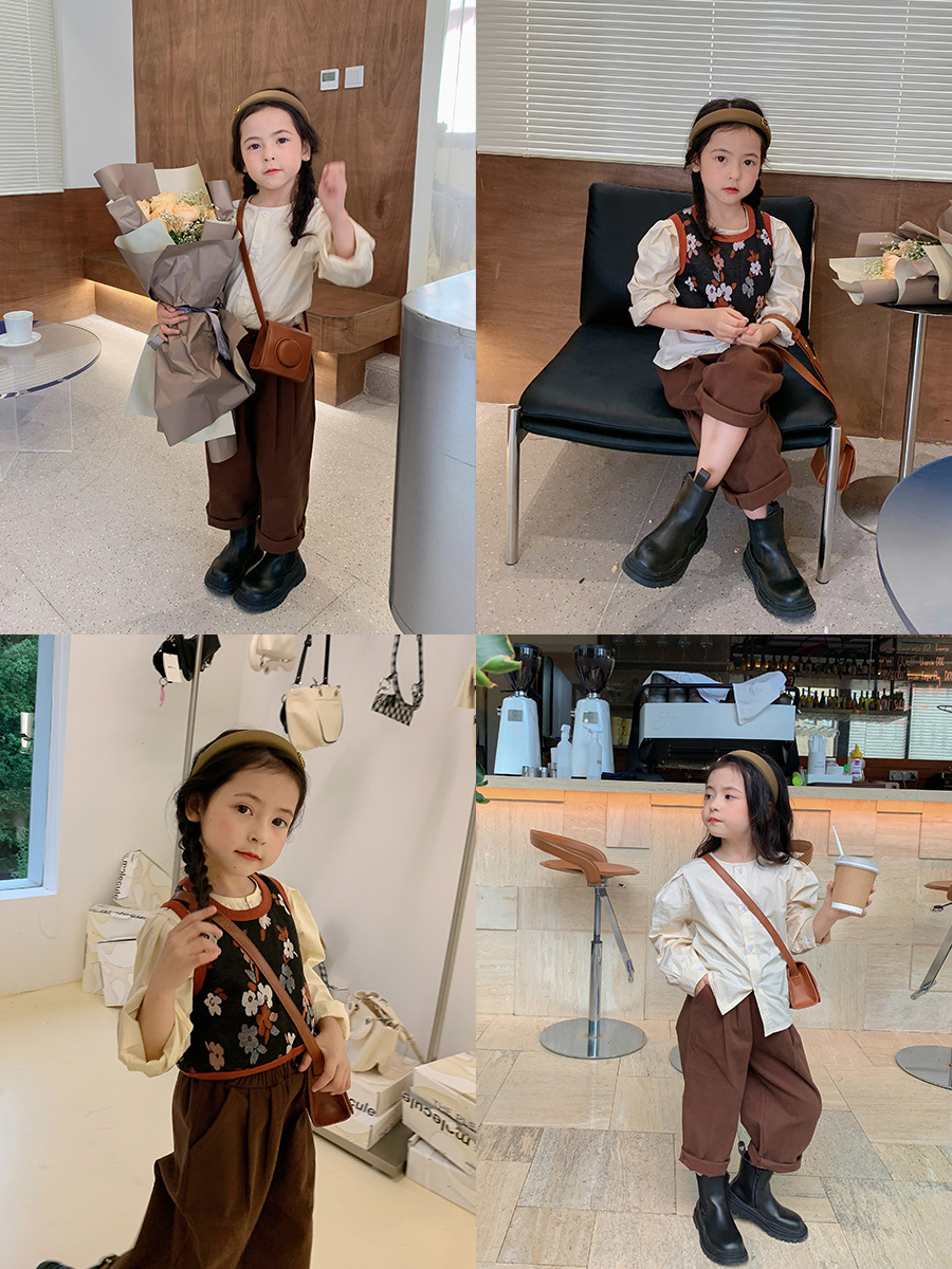 어린이 의류 도매 소녀 세트 가을 새 소녀 작은 꽃 조끼 긴 소매 셔츠 플러스 바지 3 피스 세트