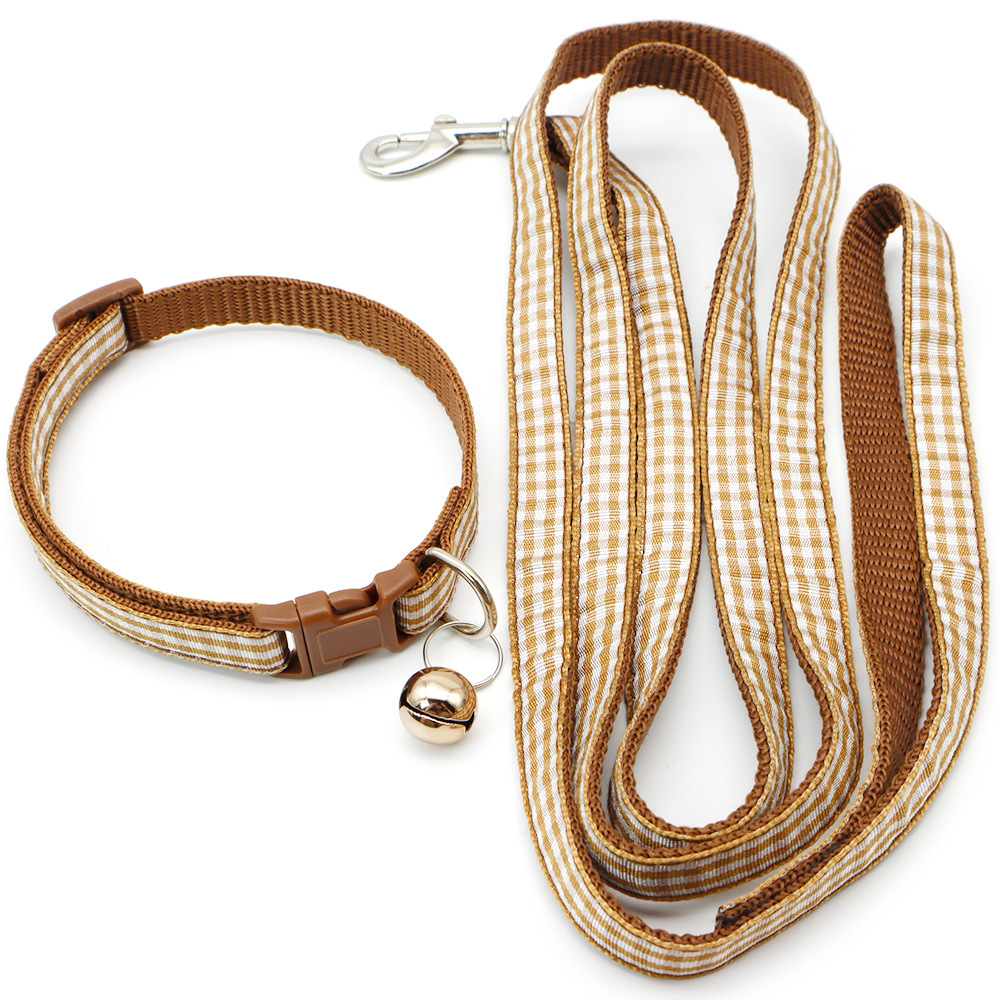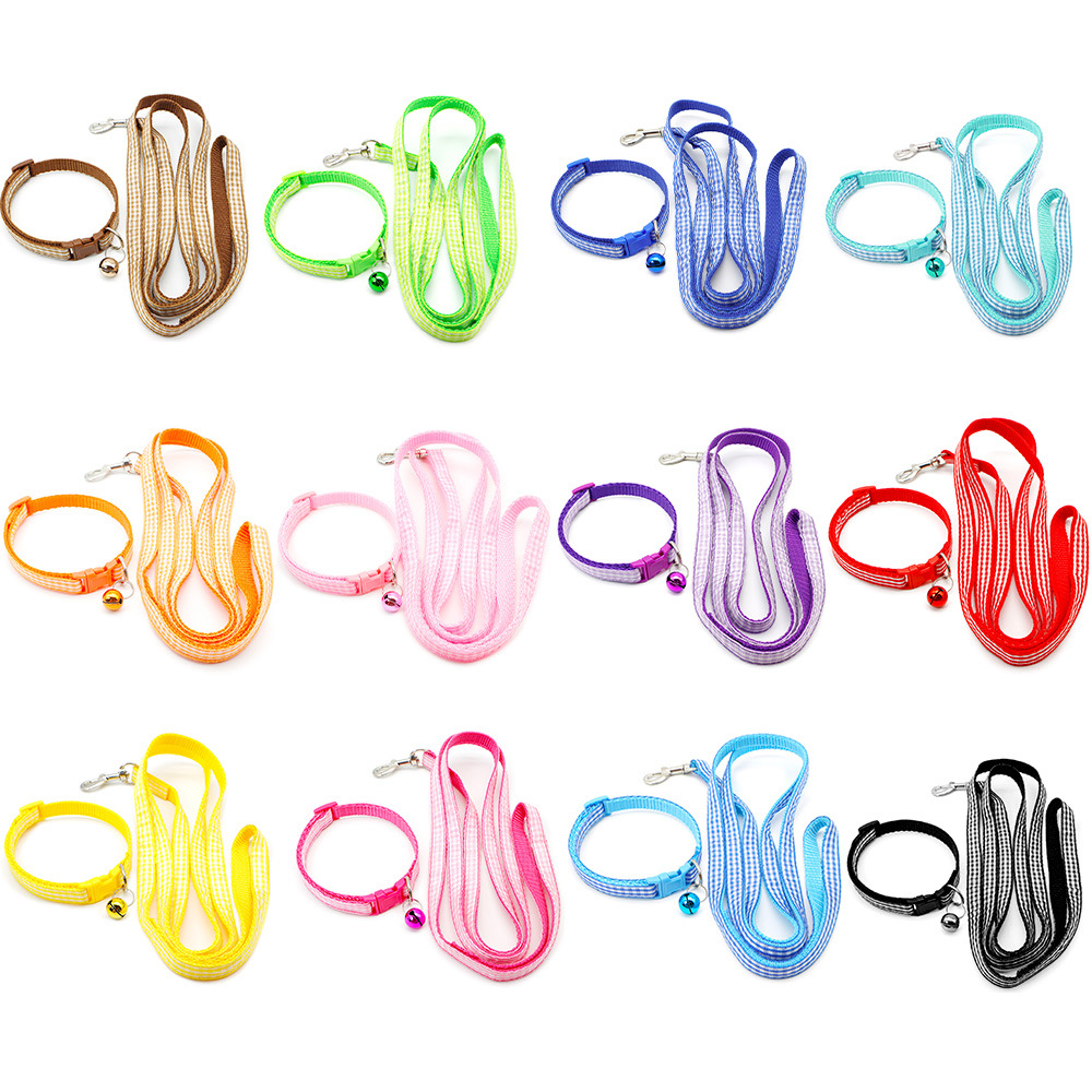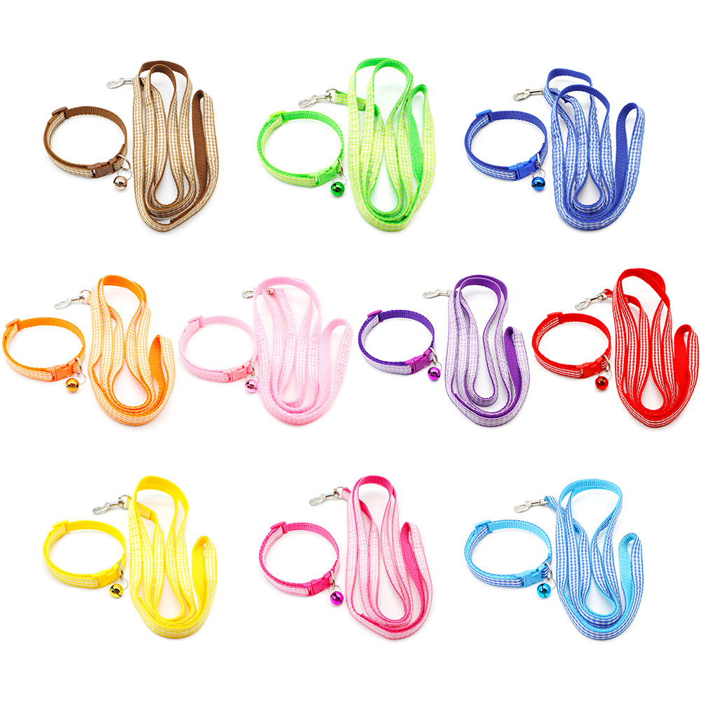 격자 무늬 개 목걸이 작은 개 조정 가능한 견인 로프 벨 스퀘어 격자 무늬 다채로운 목 애완 동물 용품