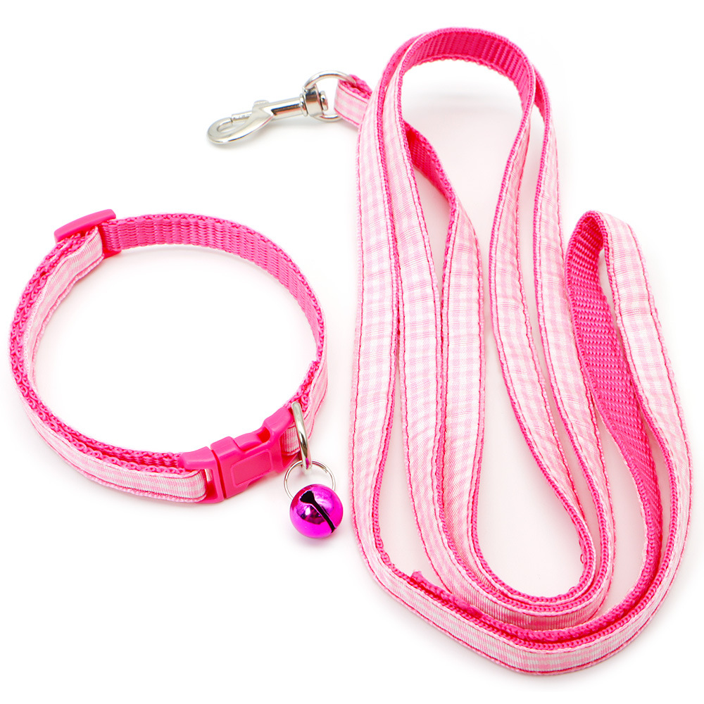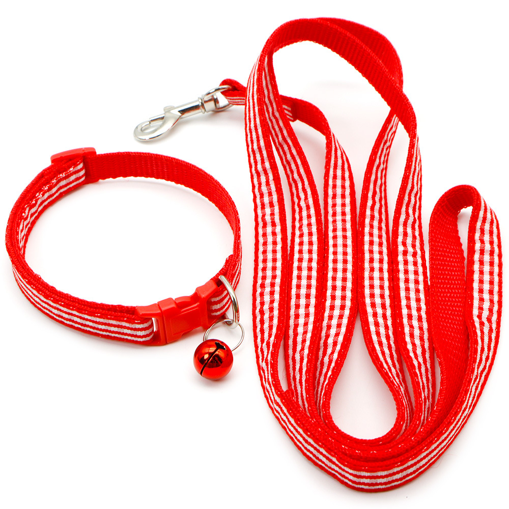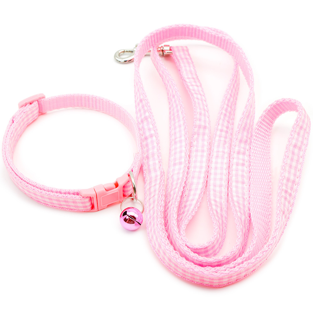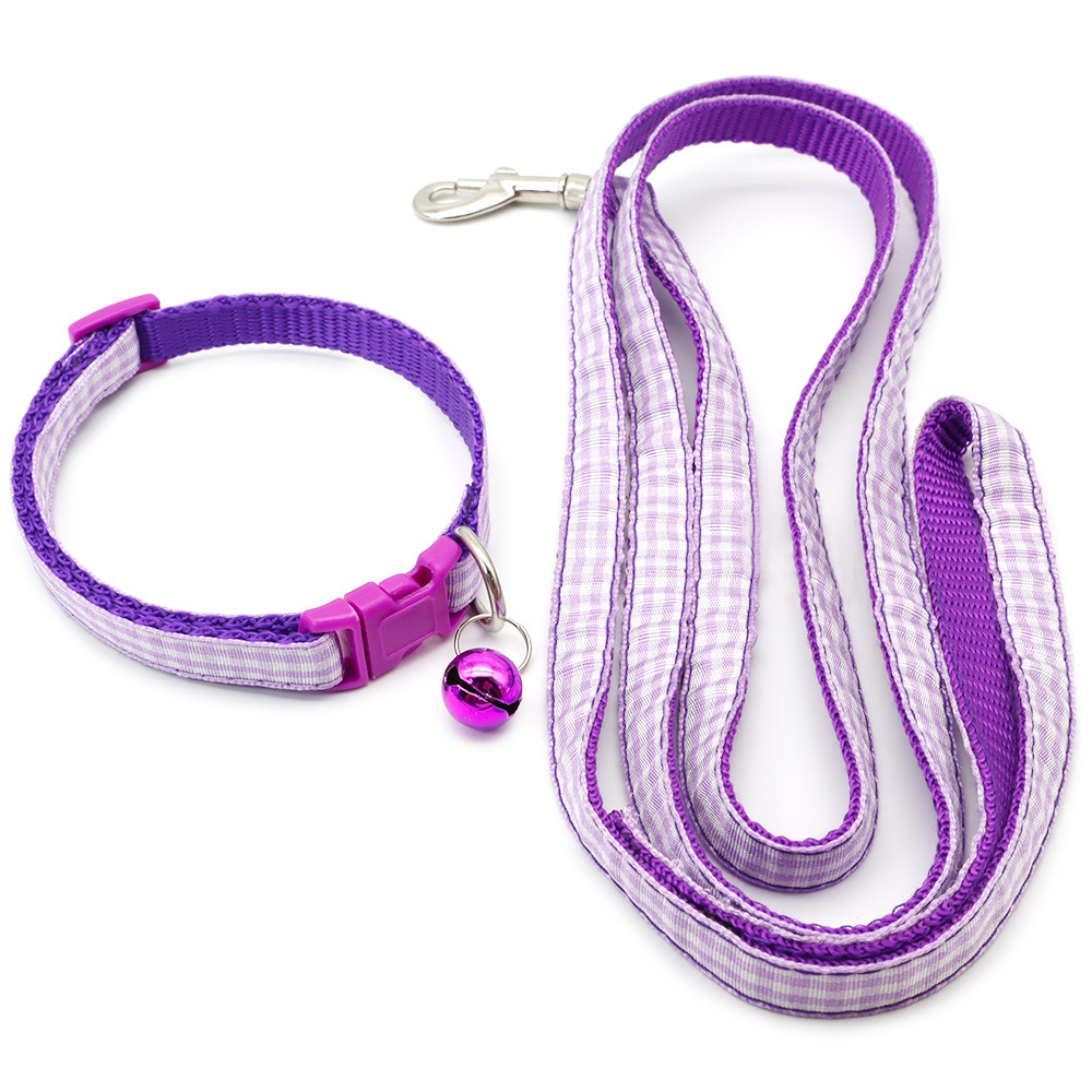 격자 무늬 개 목걸이 작은 개 조정 가능한 견인 로프 벨 스퀘어 격자 무늬 다채로운 목 애완 동물 용품