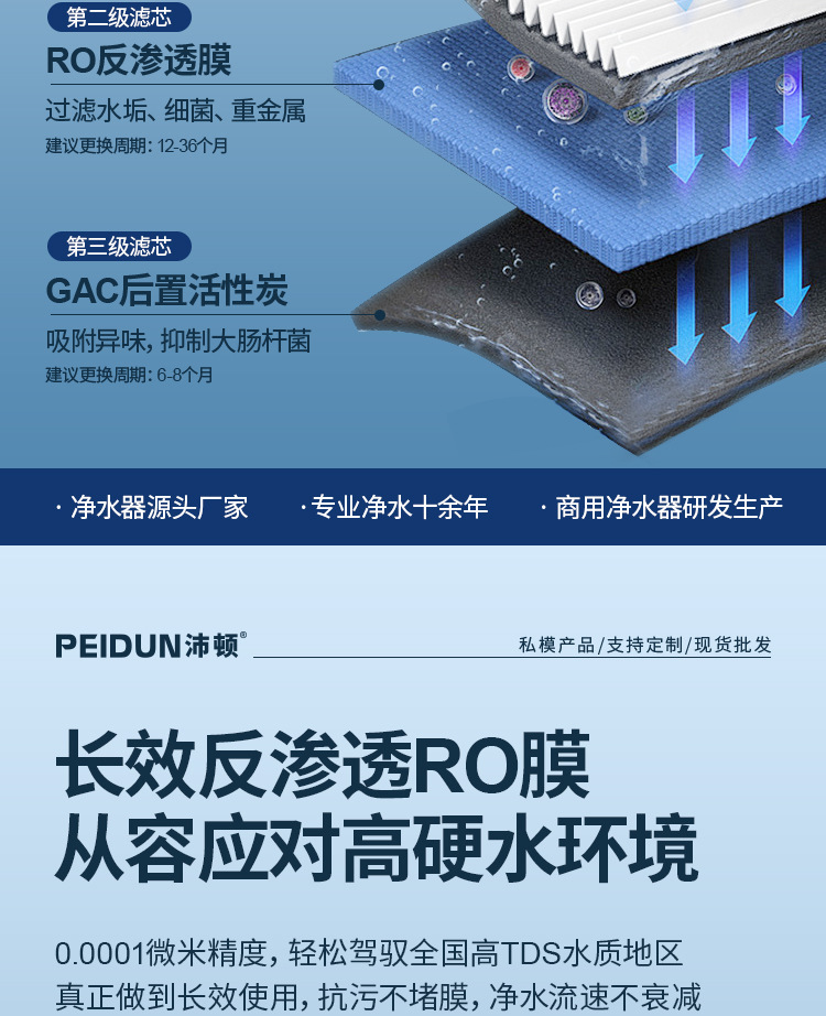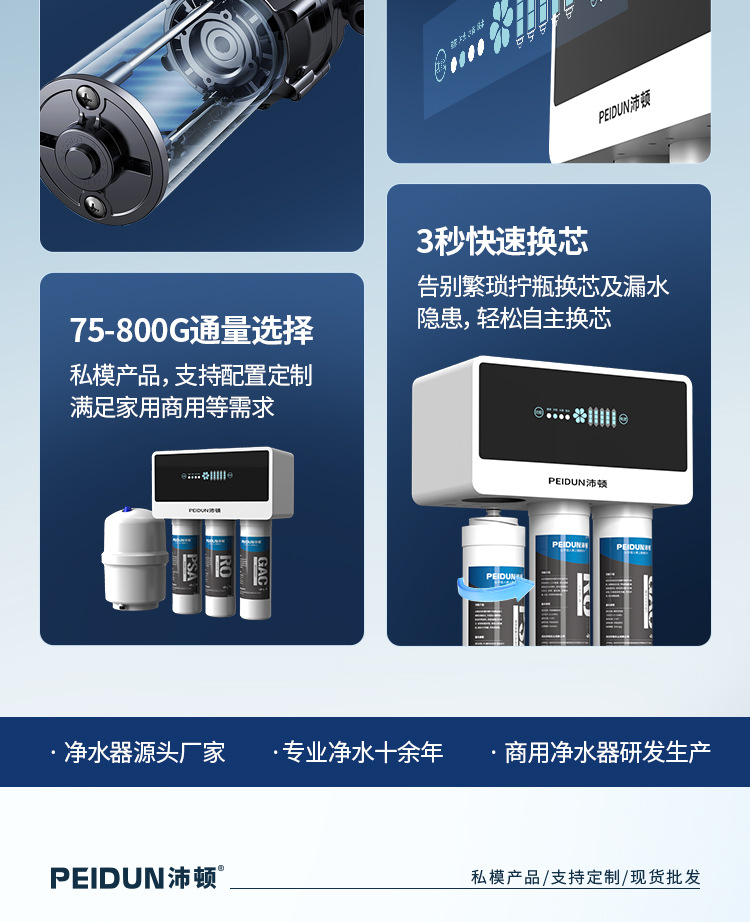 75g 공장 직접 식수 상업 역 삼투 정수기 가정용 필터 정수기 사무실 RO 정수기