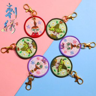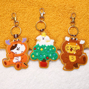 PU 수건 자수 만화 펜던트 가죽 자수 키 체인 가방 지퍼 헤드 오일 가장자리 면 봉제 인형 교수형스토어 가기
