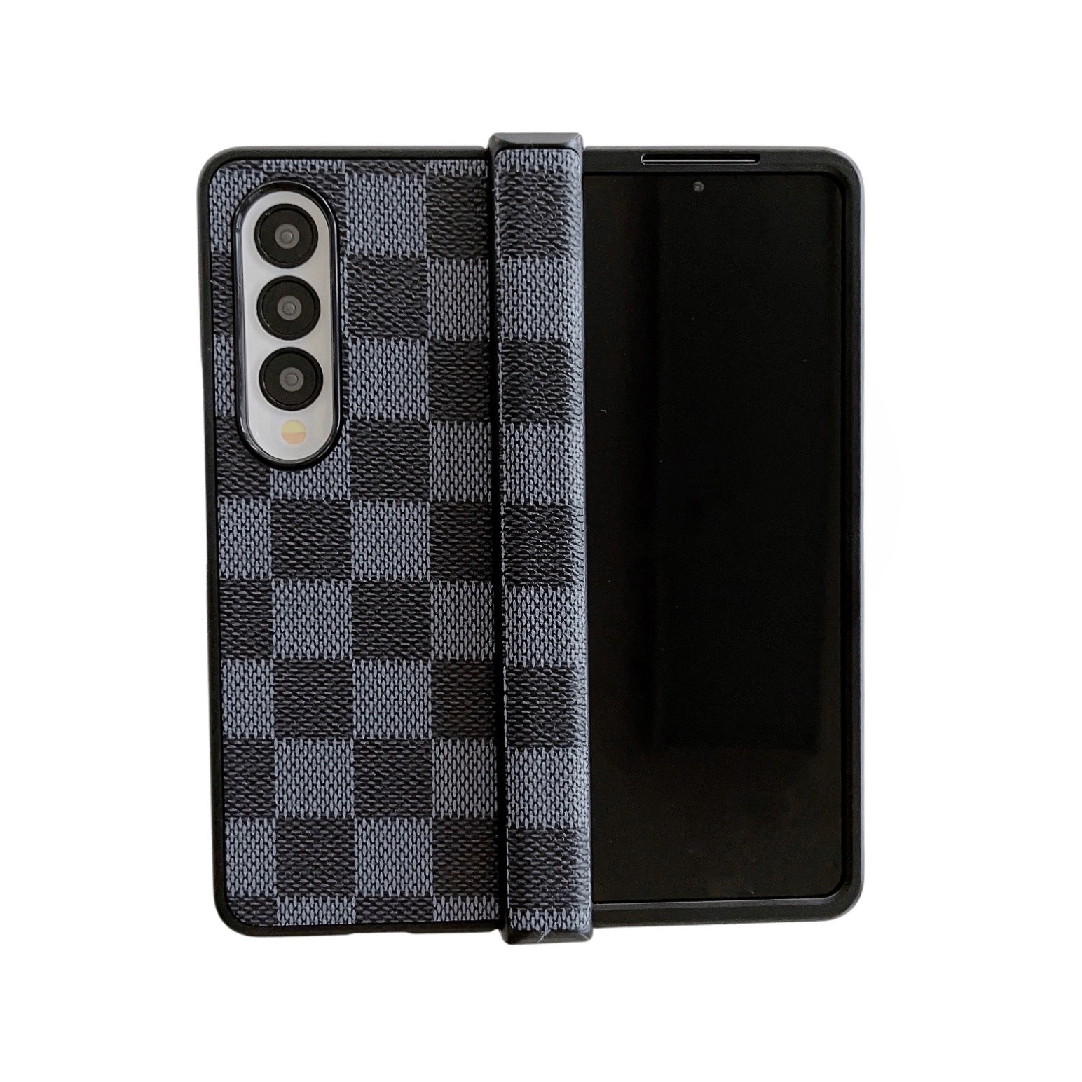 삼성 Z fold5 가죽 컬러 바둑판 체크 폰 케이스 Z Flip4 접이식 브래킷 케이스 ZFold3