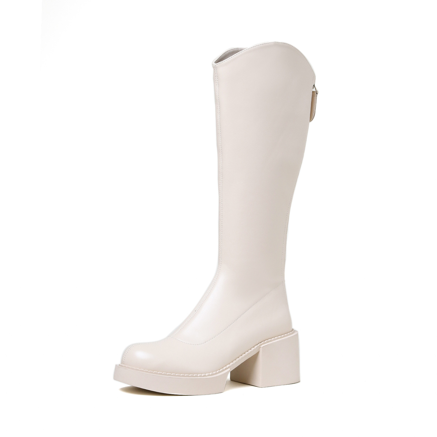 공장 직접 굽 높은 부츠이지만 무릎 가을과 겨울 새로운 두꺼운 밑창 두꺼운 굽 나이트 부츠 슬림 작은 레인 부츠