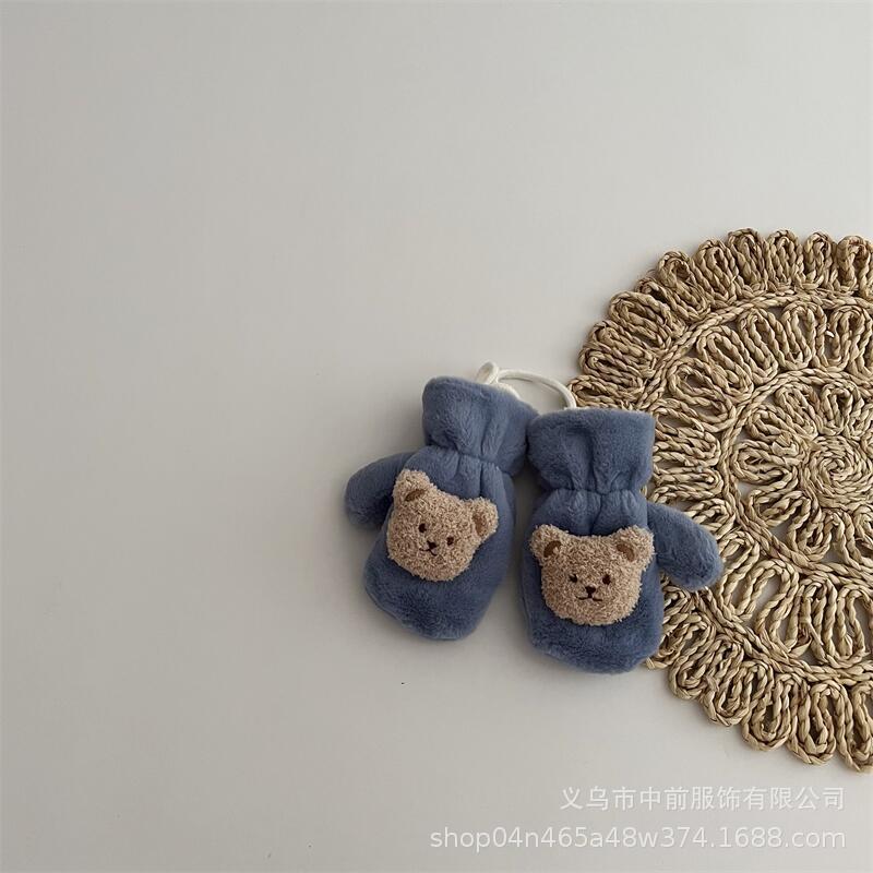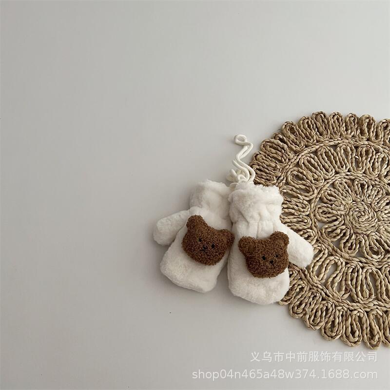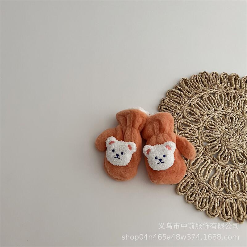 한국식 어린이 만화 곰 봉제 장갑 트렌디 한 가을과 겨울 새로운 소년과 소녀 아기 따뜻한 고삐 손가락 장갑