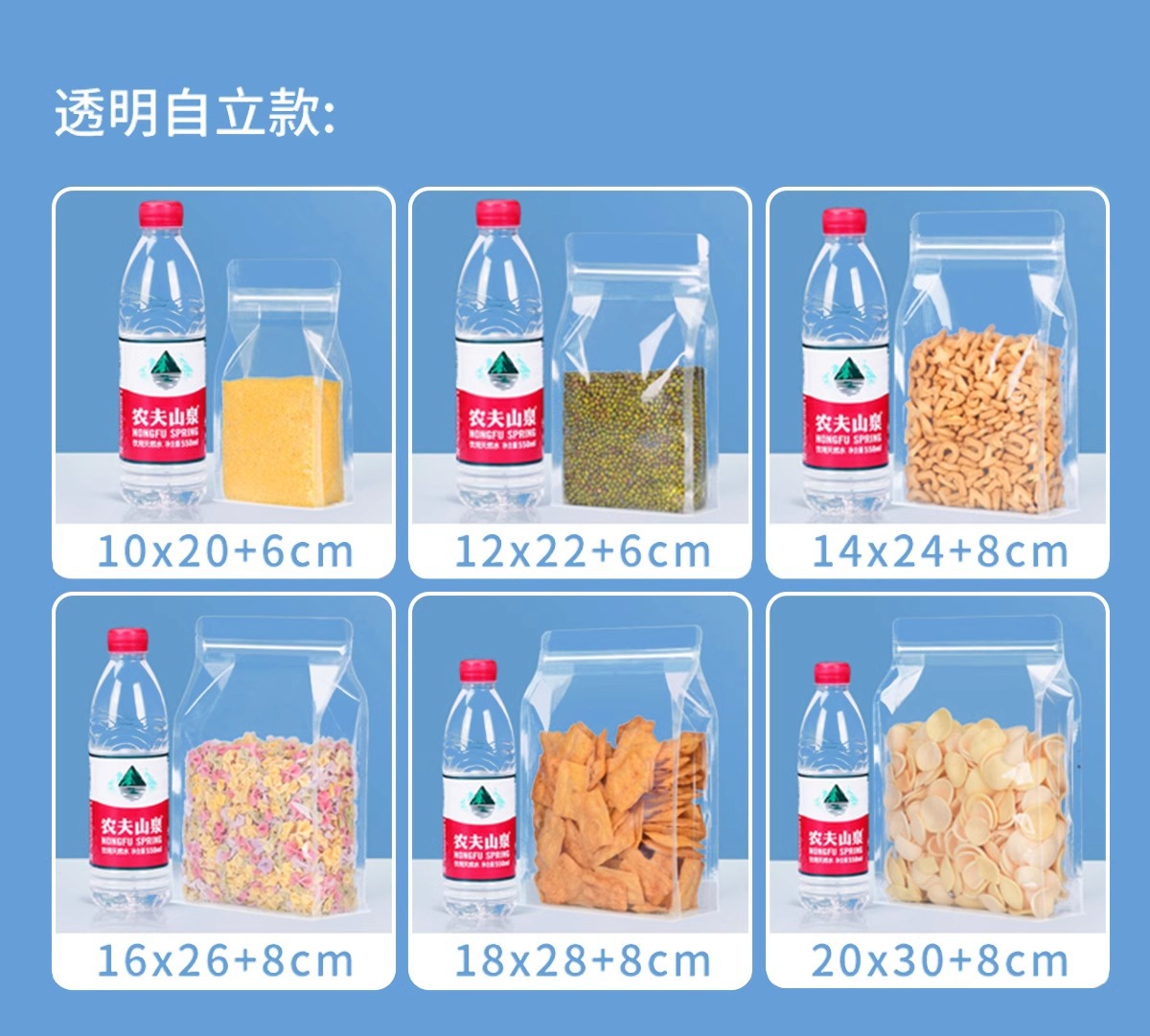 8면 밀봉 자동 밀봉 스탠딩 백 투명 반투명 차 토스트 쌀 포장 밀봉 식품 등급 비닐 봉투