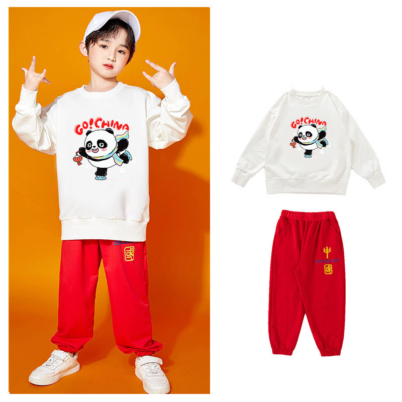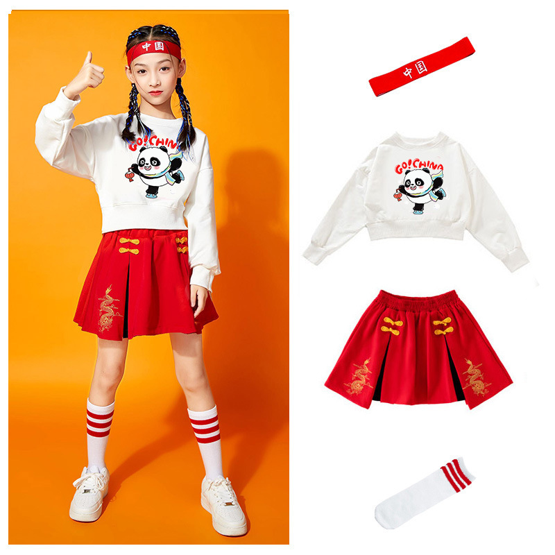 어린이 치어 리더 의상 초등학생 스포츠 의상 팬더 긴 소매 유치원 랄라 체조 합창 수업 의상