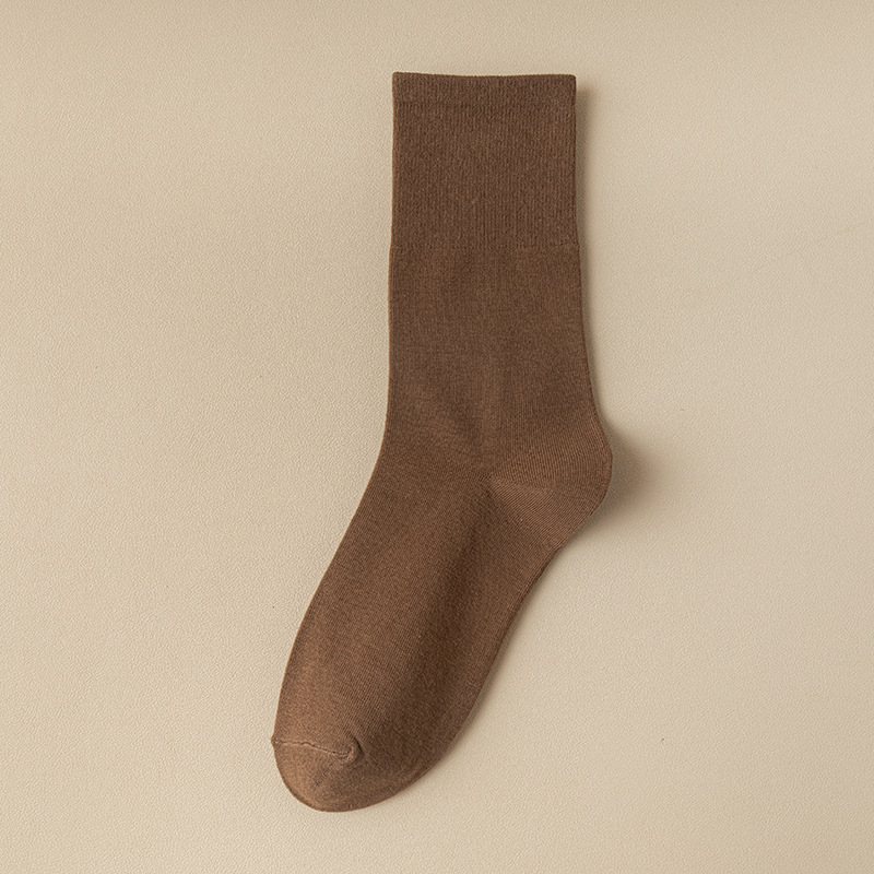 양말 여성 가을과 겨울 컬러 면 중간 길이 양말 다크 브라운 뼈없는 양말 여성 양말 가을 높은 양말 겨울 남성 양말