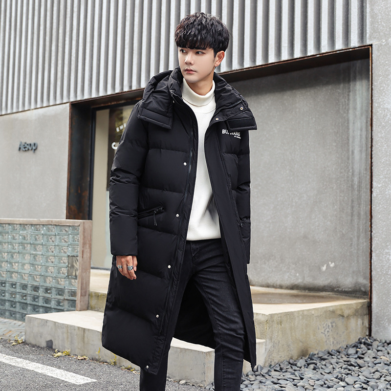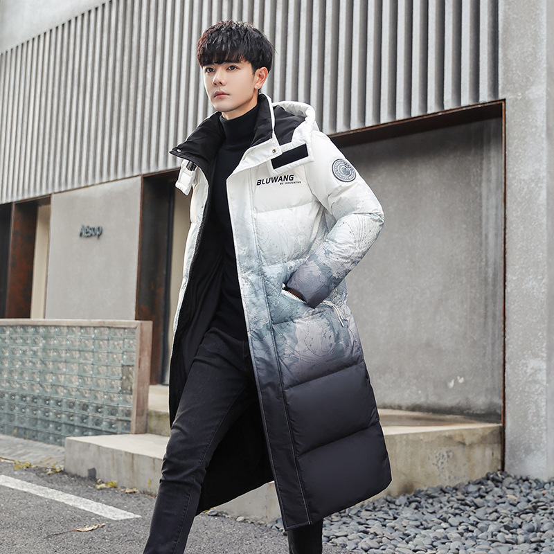 국제 90 화이트 덕 다운 롱 다운 재킷 남성 겨울 한국식 후드 툴링 그라데이션 다운 재킷 남성 의류스토어 가기
