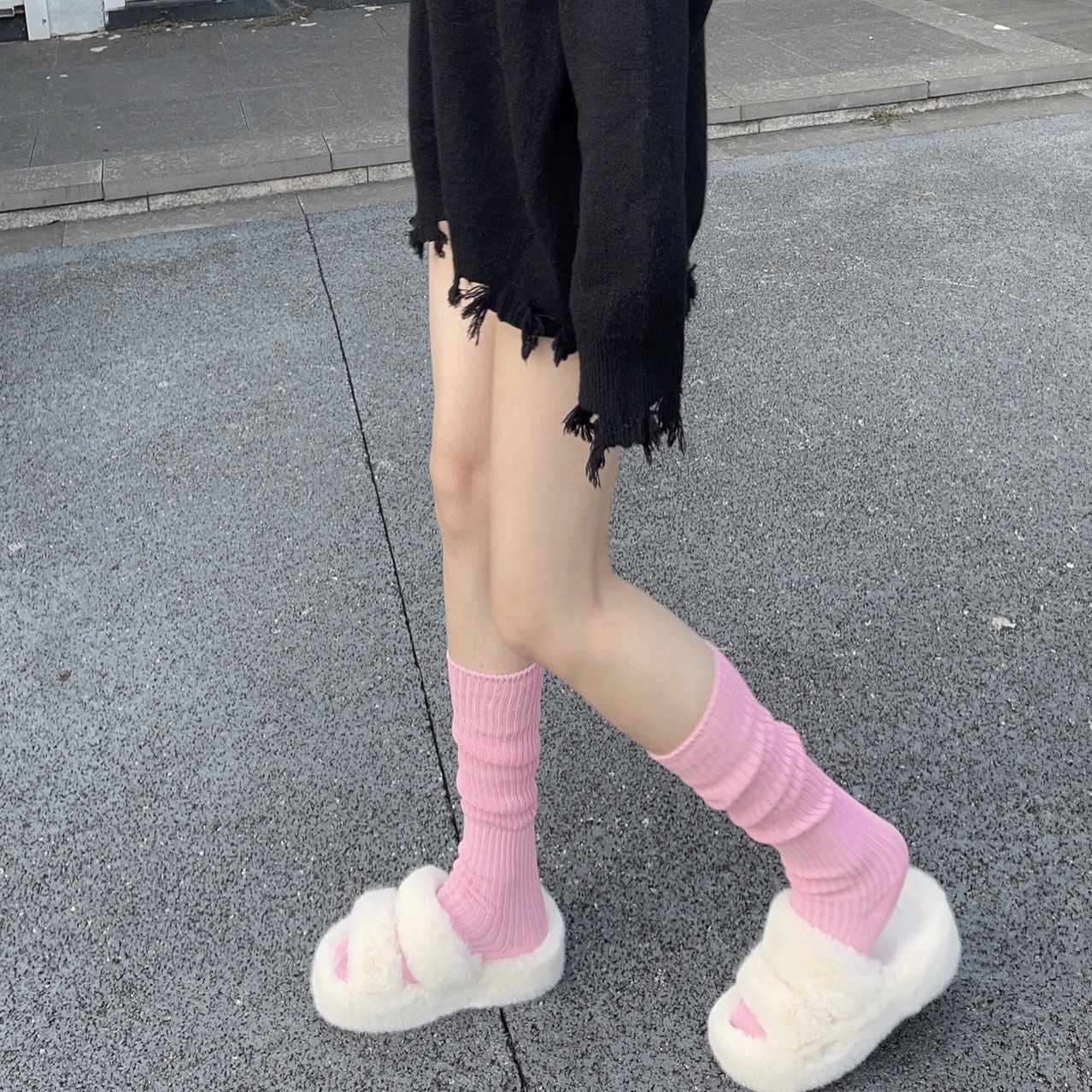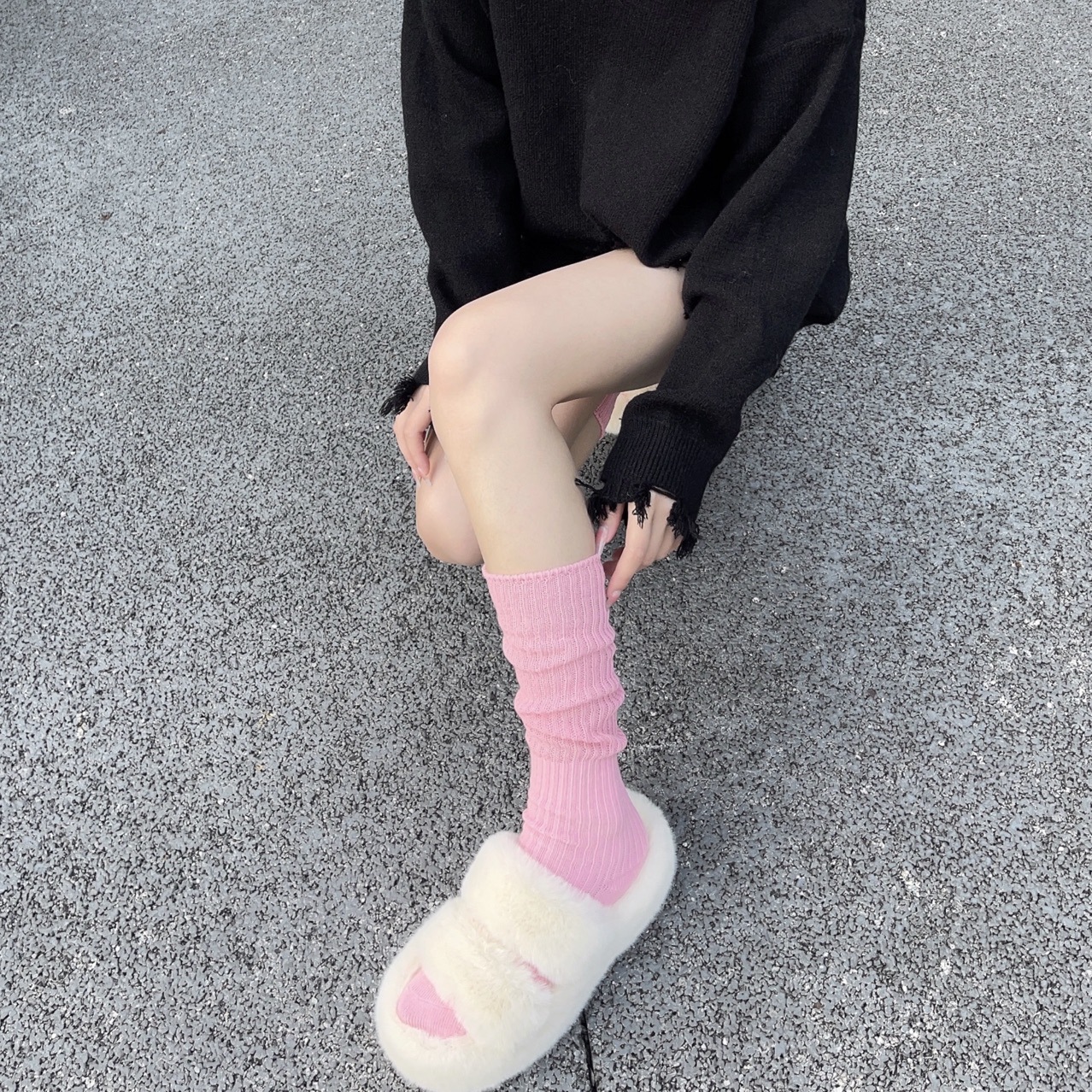 높은 버전 간단한 게으른 바람 면사 더미 송아지 양말 양말 핑크 양말을 가진 상점 주인의 한국 아내스토어 가기