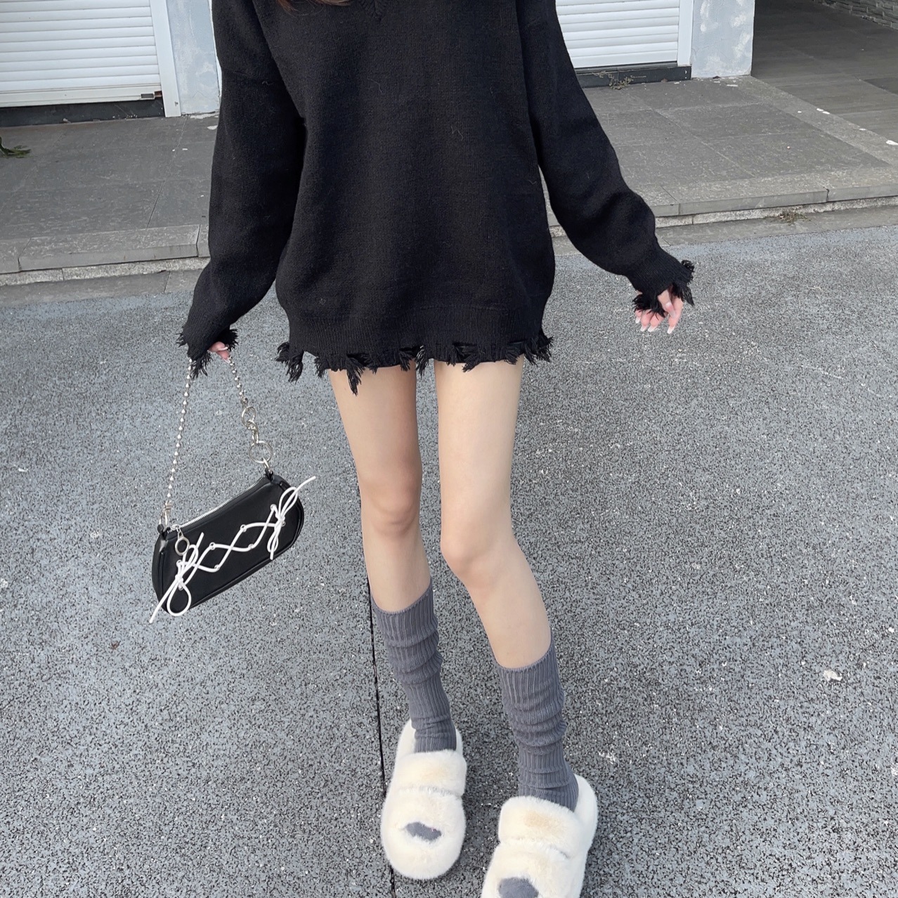 높은 버전 간단한 게으른 바람 면사 더미 송아지 양말 양말 핑크 양말을 가진 상점 주인의 한국 아내