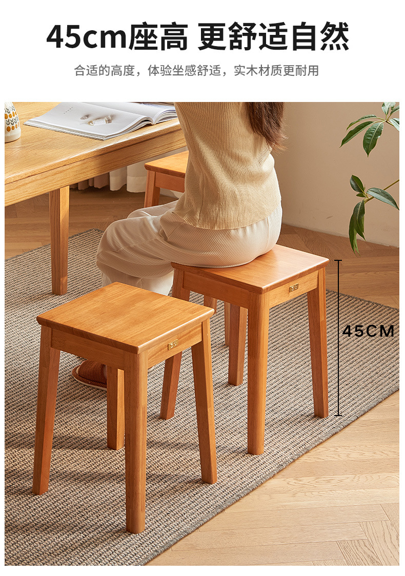 가정용 단단한 나무 쌓을 수있는 다이닝 스툴 모네 스퀘어 스툴 침실 드레싱 스툴 하이 스툴 간단한 식탁 의자 작은 스툴