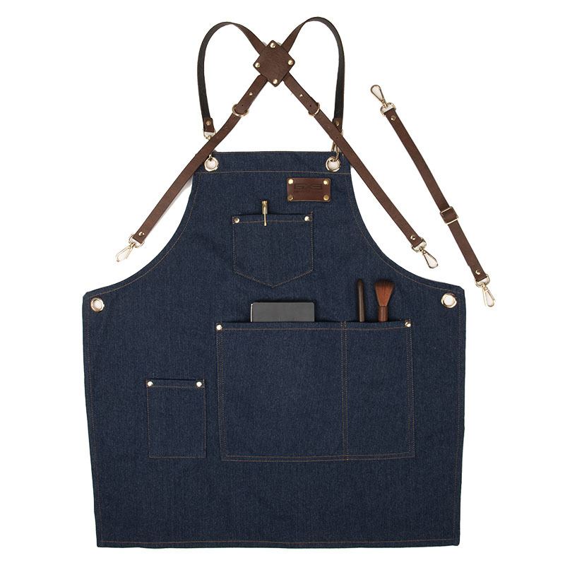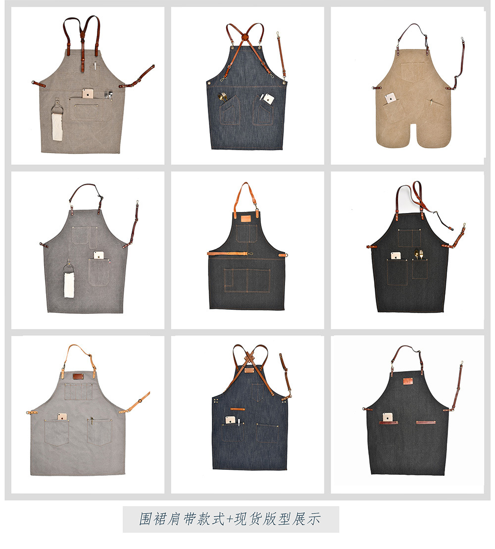 앞치마 바지 데님 스타일리스트 밀크 티 케이크 가게 바리 스타 남자와 여자의 꽃집 머리 열 전송 로고스토어 가기