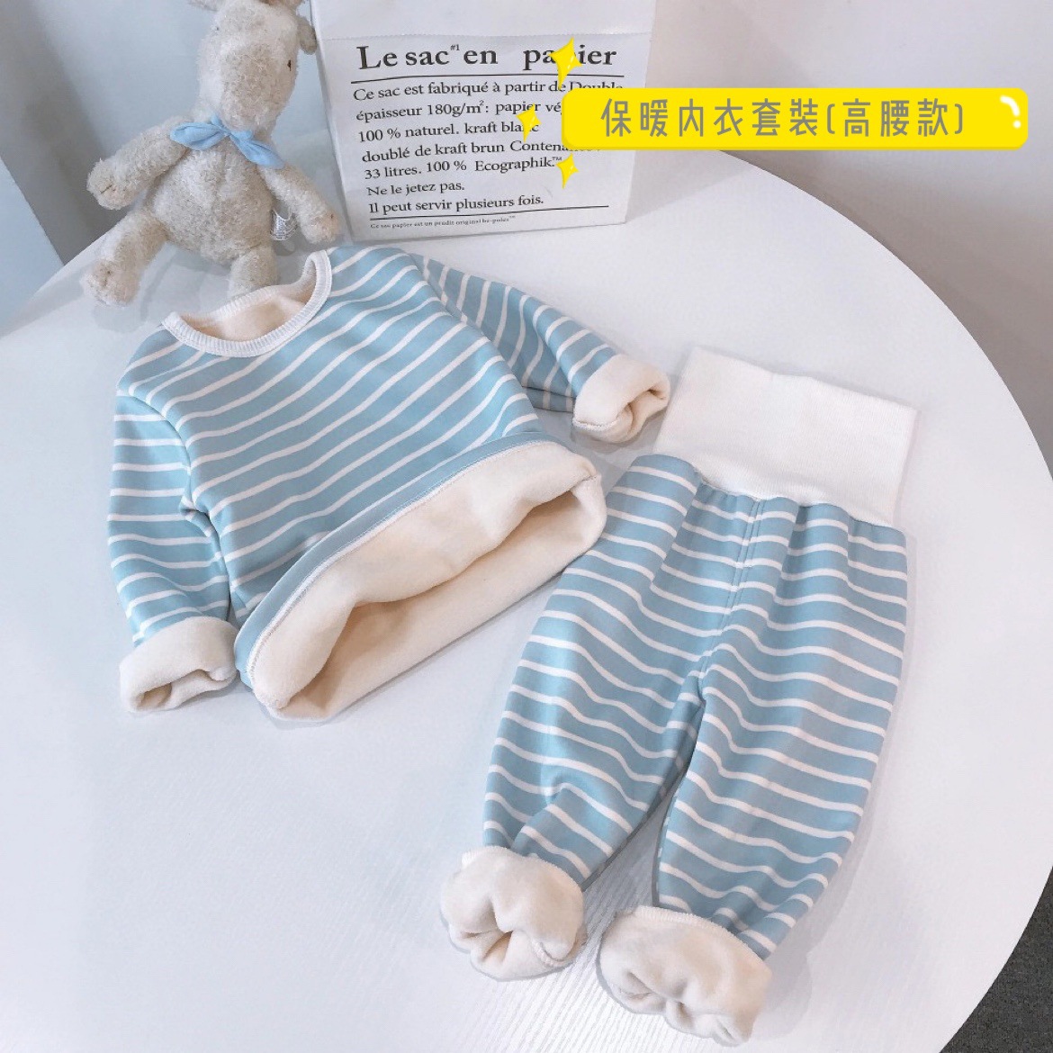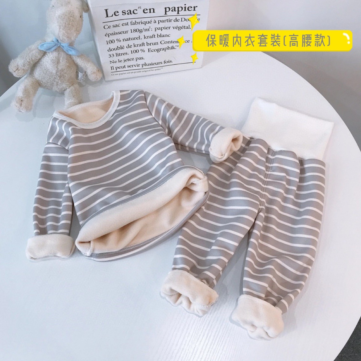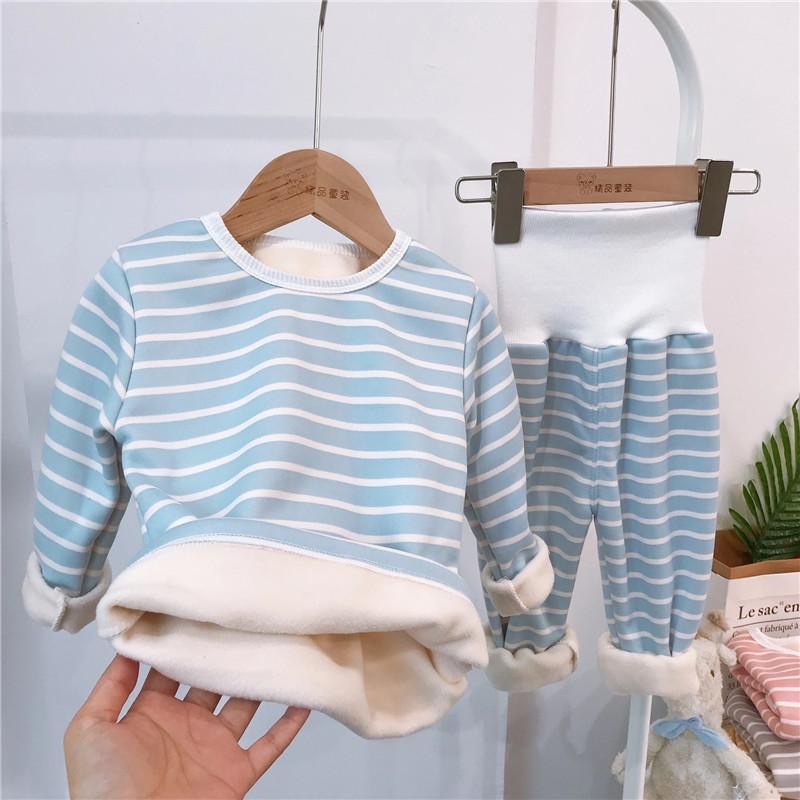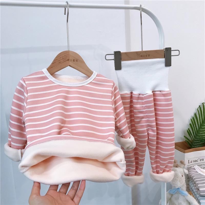 우송료 어린이 열 속옷 세트 겨울 줄무늬 가정 옷 하이 허리 배꼽 잠옷 2 종 세트